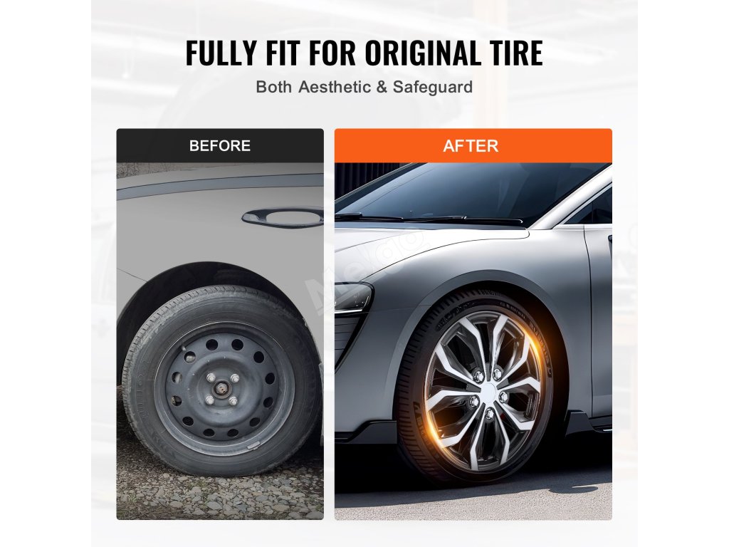 Tyto kryty ráfků kol s plným krytím chrání před znečištěním a pískem a pomáhají prodloužit životnost vašich pneumatik.