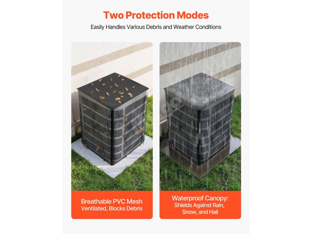 Kompatibilní s různými venkovními klimatizacemi. Správné uchycení zajistíte výběrem modelu o 2 palce většího, než je vaše klimatizace. Pečlivě měřte, abyste se vyhnuli problémům s instalací.