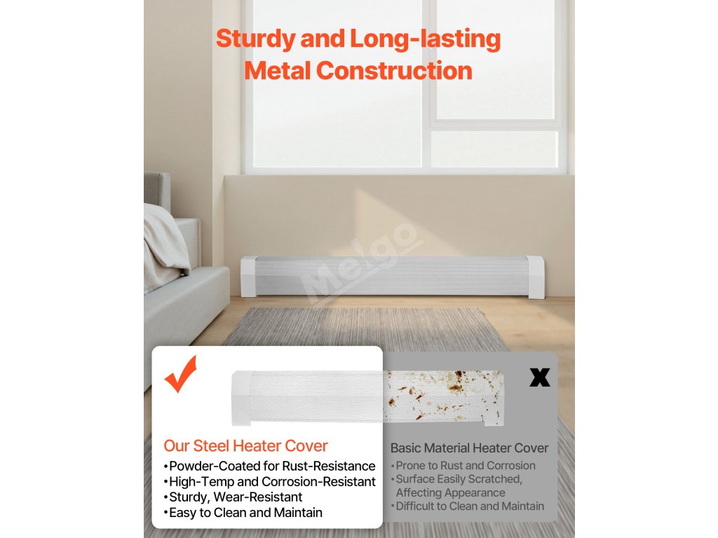 Tento náhradní kryt podlahového topení je vhodný pro různá topná tělesa a je vyroben z odolné oceli s práškovým nástřikem pro snadné čištění. Účinné větrání zabraňuje přehřátí a zajišťuje rovnoměrné rozložení tepla. Snadno se instaluje a jeho elegantní bílý design doplní každý domácí interiér.