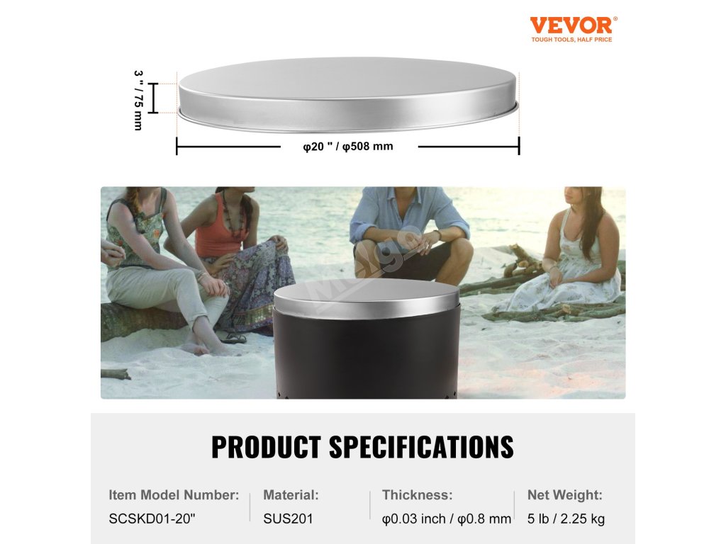 Kryt na ohniště 20" nerezový jiskrový se snadným otevíráním pro zahradu