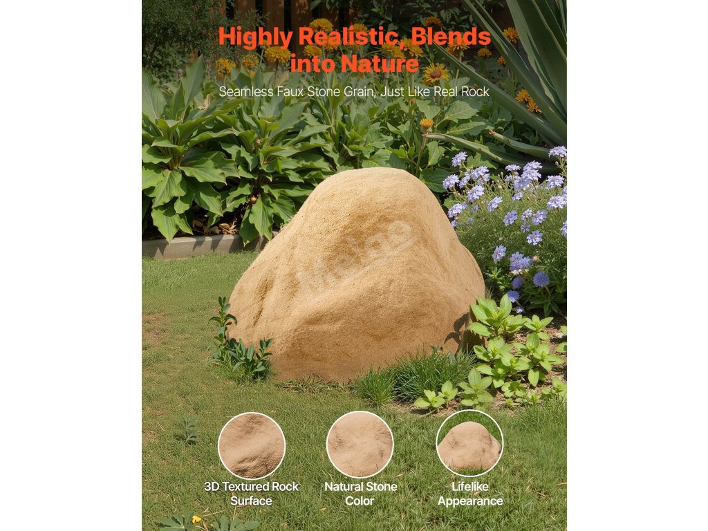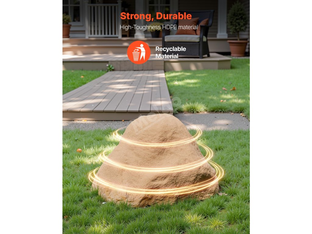 Úhel lze flexibilně otáčet a nastavovat podle vašich potřeb. Tento krajinný skalní kryt je ideální pro zakrytí poklopů šachet, malých čerpadel, stínění elektrických krabic a zahradní dekorace. Díky víceúčelovému provedení je praktický a stylový.