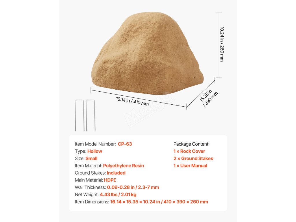 Tento kryt na skály je vyroben z HDPE s vysokou hustotou a je odolný vůči slunečnímu záření, blednutí a praskání i v drsných zimních podmínkách. Náš kryt na umělou skálu si zachovává úhledný vzhled pro dlouhodobé venkovní použití - je spolehlivý a odolný.