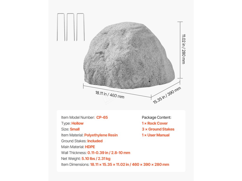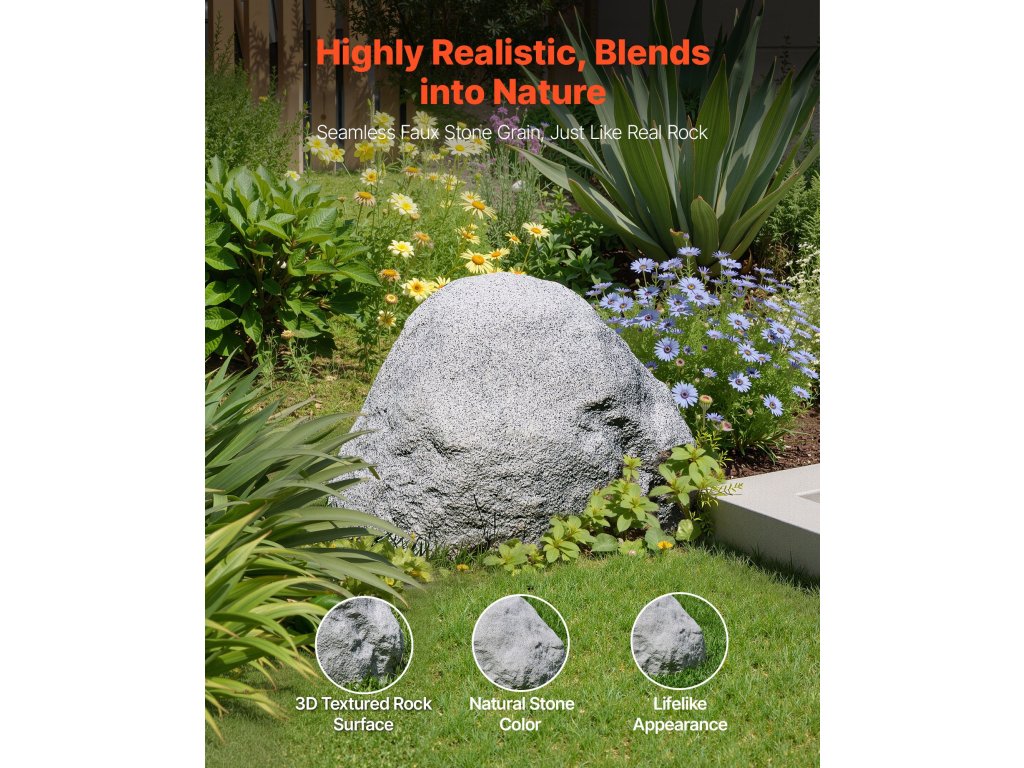Úhel lze flexibilně otáčet a nastavovat podle vašich potřeb. Tento krajinný skalní kryt je ideální pro zakrytí poklopů šachet, malých čerpadel, stínění elektrických krabic a zahradní dekorace. Díky víceúčelovému provedení je praktický a stylový.