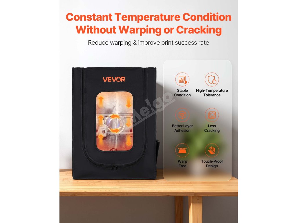 Toto pouzdro pro 3D tiskárny udržuje konstantní teplotu. Jeho vnitřek je vybaven nehořlavým materiálem pro spolehlivé používání. Je odolné proti prachu a hluku a zároveň poskytuje průhledné okno pro sledování v reálném čase. Zabraňuje náhodnému kontaktu, čímž zajišťuje bezproblémový provoz tisku.