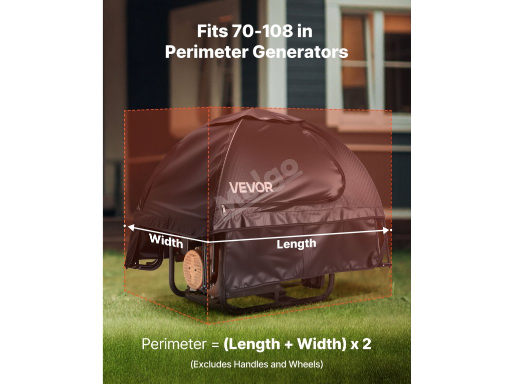 Tento kryt generátora s rozmermi 36,02 x 26 x 26 palcov je určený pre generátory s obvodom 70-108 palcov. Poskytuje širokú kompatibilitu, aby vyhovoval rôznym modelom a veľkostiam, čím spĺňa rôzne potreby používania.