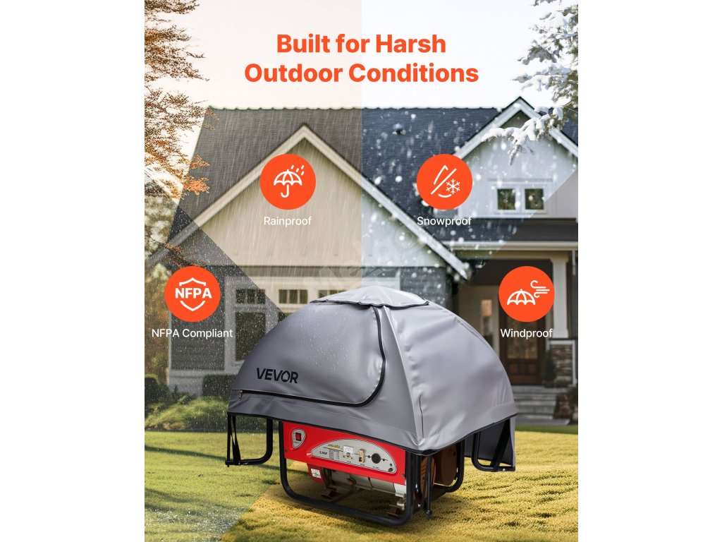 Tento univerzálny kryt na generátor, vyrobený z odolnej vinylovej tkaniny s vinylom, poskytuje vynikajúcu odolnosť proti opotrebovaniu, roztrhnutiu a vode. Je skonštruovaný tak, aby zvládol dážď, sneh, slnko a dlhodobé vonkajšie používanie vo všetkých ročných obdobiach.