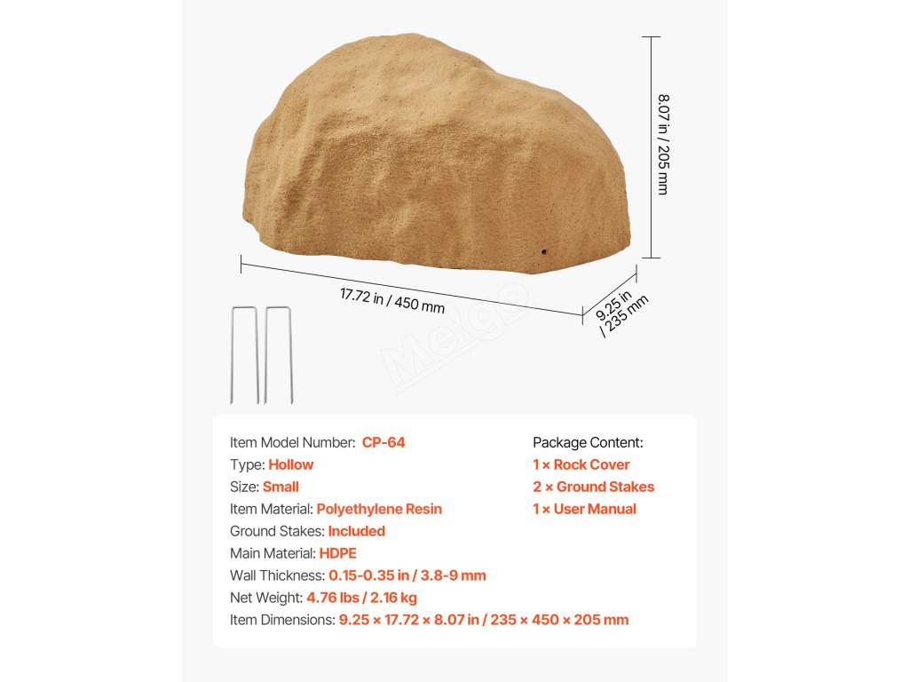 Tento kryt na skály je vyroben z HDPE s vysokou hustotou a je odolný vůči slunečnímu záření, blednutí a praskání i v drsných zimních podmínkách. Náš kryt na umělou skálu si zachovává úhledný vzhled pro dlouhodobé venkovní použití - je spolehlivý a odolný.