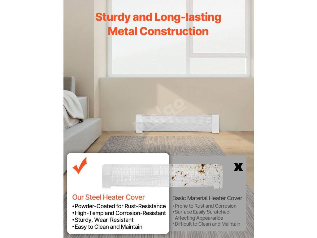Tento kryt radiátoru je vyroben z robustní oceli a zaručuje dlouhodobé používání bez deformací. Jeho součástí jsou také koncové krytky odolné proti poškrábání, které zabraňují poškození při každodenním používání. Optimalizovaná konstrukce větracího otvoru zabraňuje přehřátí, čímž prodlužuje životnost topného tělesa.