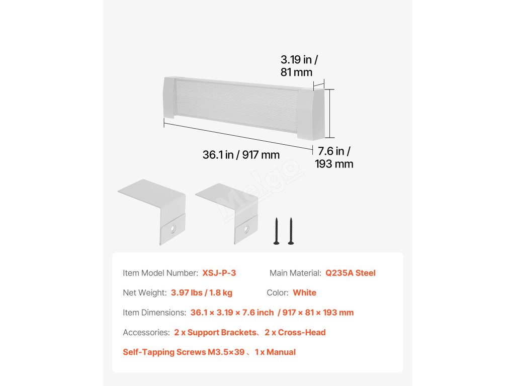 Tento náhradní kryt podlahového topení je vhodný pro různá topná tělesa a je vyroben z odolné oceli s práškovým nástřikem pro snadné čištění. Účinné větrání zabraňuje přehřátí a zajišťuje rovnoměrné rozložení tepla. Snadno se instaluje a jeho elegantní bílý design doplní každý domácí interiér.