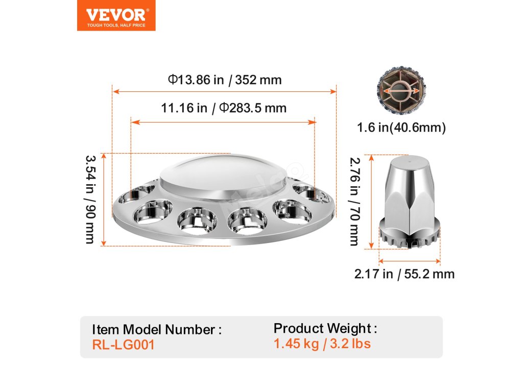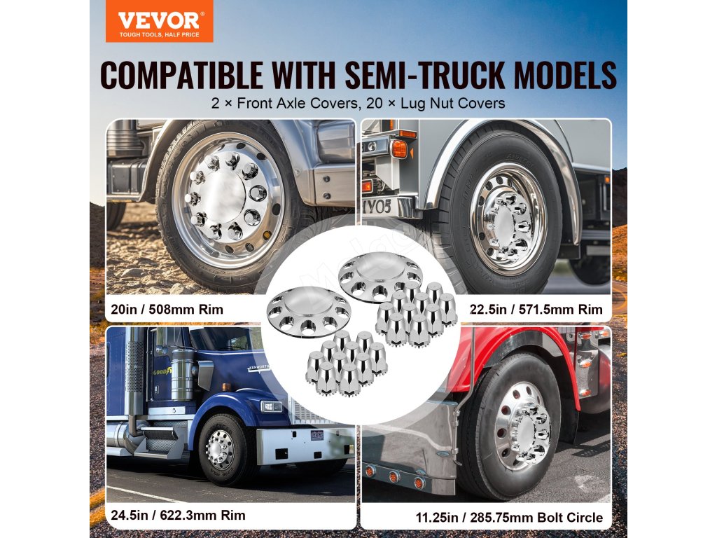 Ať už má váš nákladní vůz 20palcová, 22,5palcová nebo 24,5palcová kola nebo 11,25palcový kruh šroubů, tento kryt nápravy přívěsu dodá vašemu vozu vlastní vzhled a váš vůz na silnici vynikne.
