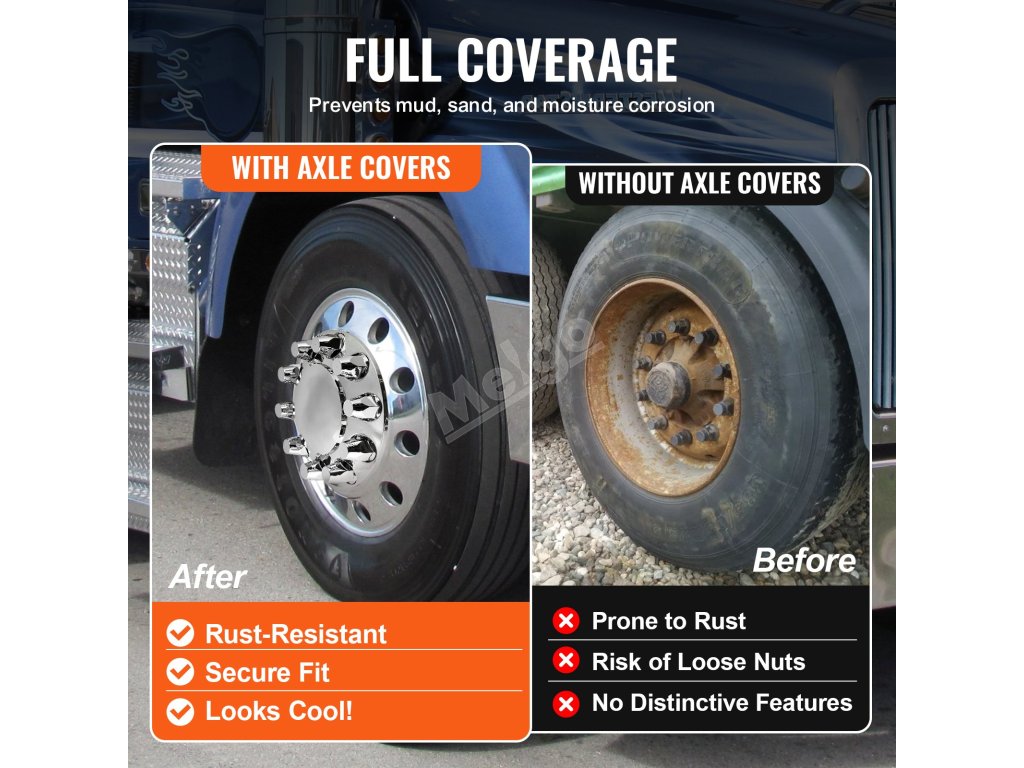 Tato kompletní sada kombinovaných krytů nápravy poskytuje úplnou ochranu nápravy, účinně blokuje vlhkost, prach, nečistoty a sůl a prodlužuje životnost nápravy a matic kol. Přesná konstrukce krytu chrání nápravu před korozí a opotřebením, čímž zvyšuje bezpečnost.