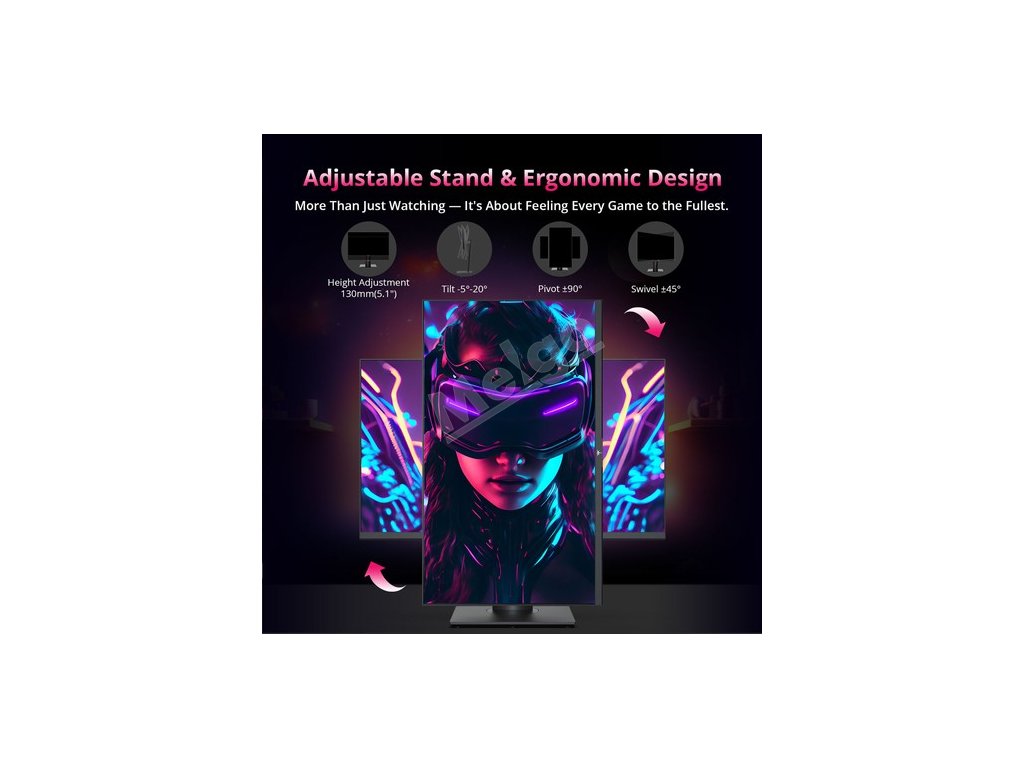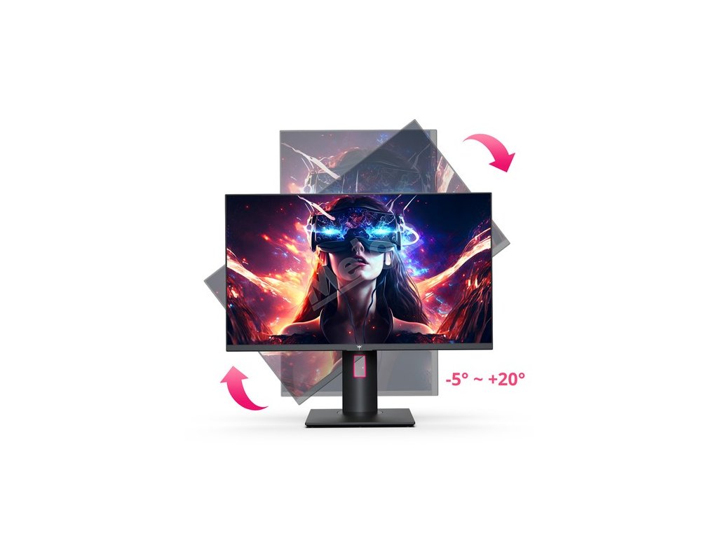 Ergonomická a nastavitelná konstrukce stojanu s možností nastavení výšky, náklonu, natočení a otočení spolu s podporou vertikální orientace monitoru umožňuje zvolit optimální pozorovací úhel pro maximální pohodlí. tato funkce zajišťuje neunavující zážitek i během dlouhých herních seancí. Snadnému pohybu a polohování napomáhá také konstrukce s držákem VESA (100 mm x 100 mm).