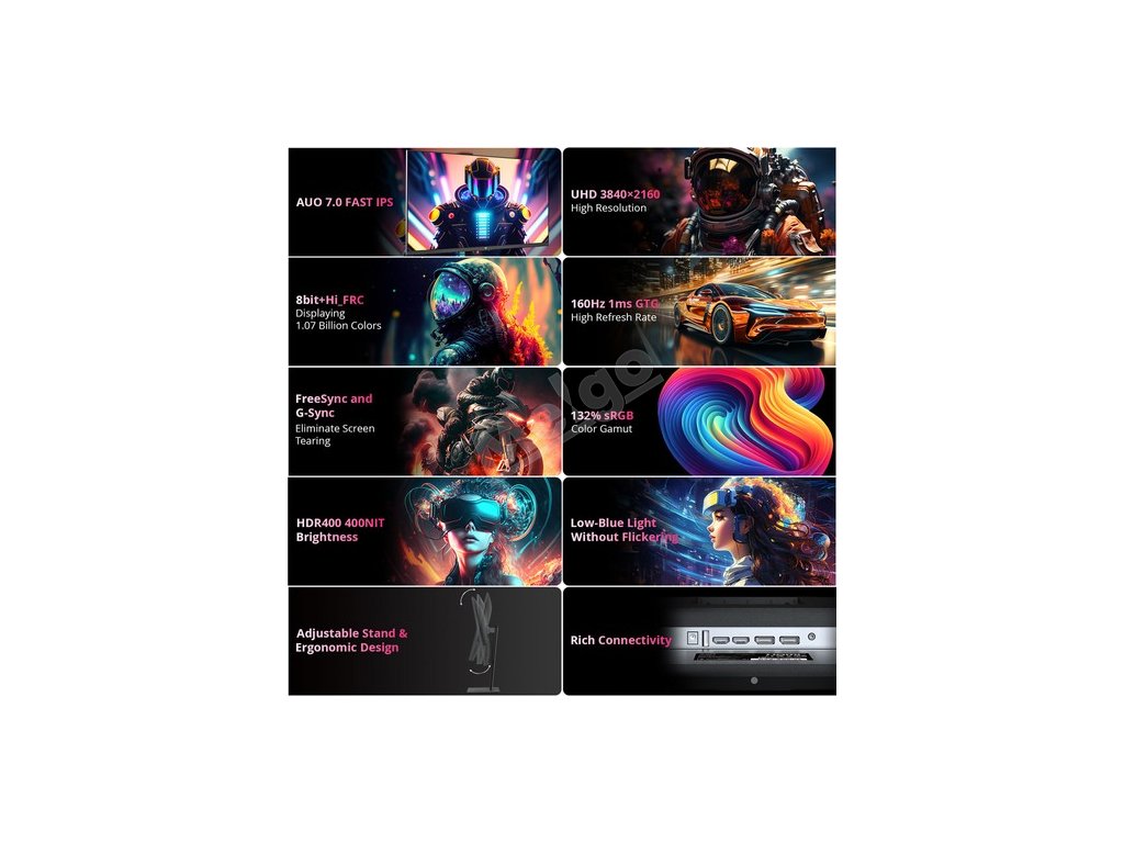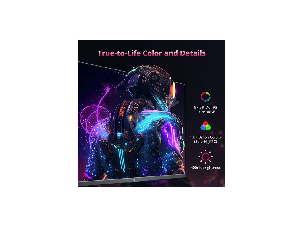 27palcový 4K monitor s technologií HDR400 má kontrastní poměr 1000:1, jas 400 cd/m² a barevný gamut 132 % sRGB. Tento monitor poskytuje věrné barvy a hlubokou černou, takže se ponoříte do herního prostředí, kde je každá scéna stejně živá a detailní jako ve skutečném světě.