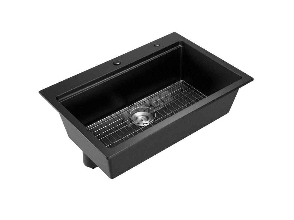 Náš granitový dřez má hladký matný černý povrch s jemným luxusem, který s rafinovanou elegancí doplňuje moderní kuchyně a elegantní bary. Praktický a snadno udržovatelný kuchyňský dřez pro horní montáž povýší každodenní kuchyňské práce na příjemný zážitek.