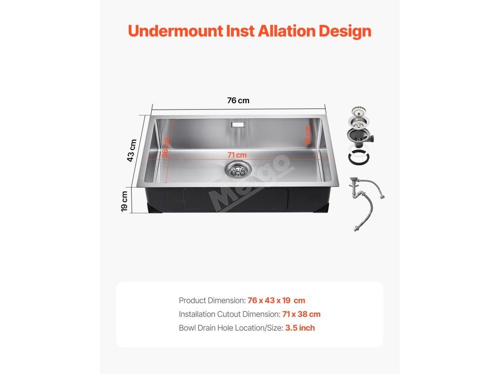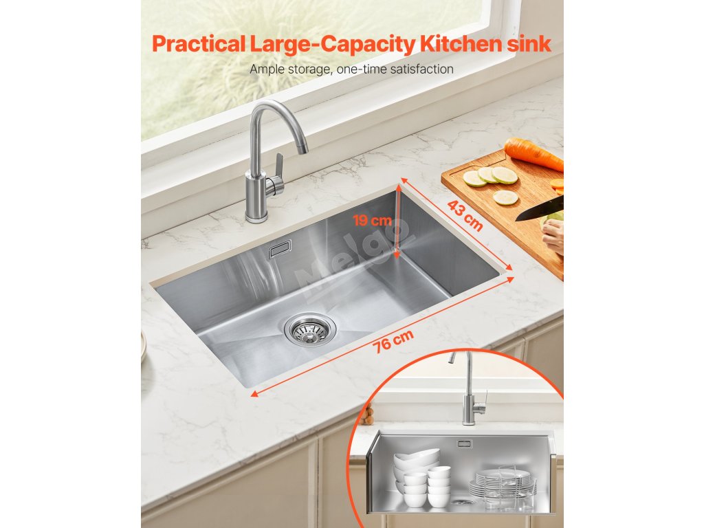 Vnější rozměry: 76x43 cm. 71x38 cm. Extra hloubka 19 cm je ideální pro mytí velkého kuchyňského náčiní. Její moderní design zaručuje dlouhodobé používání v rušné kuchyni. Před nákupem si ověřte, zda se vejde na vaši kuchyňskou linku.