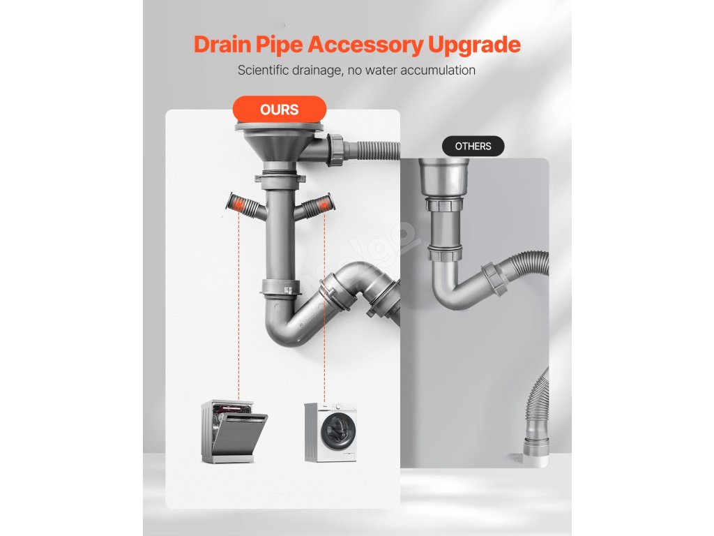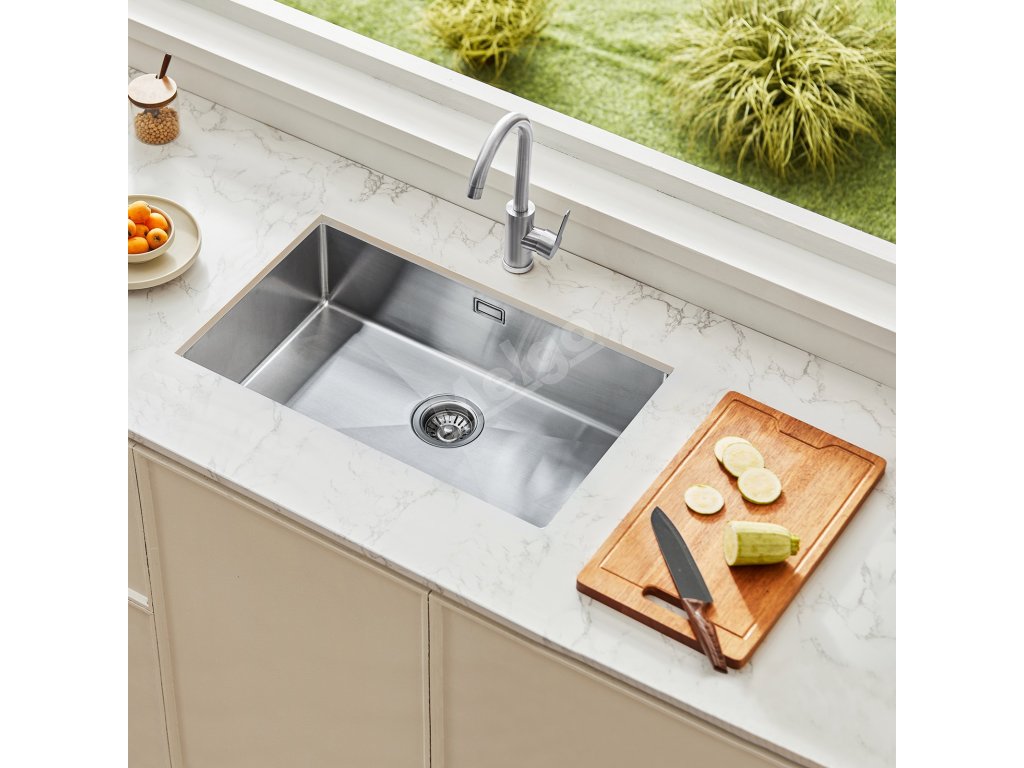 Přípravný kuchyňský dřez má ve spodní části odtok ve tvaru písmene X a je vybaven odtokovou soupravou, která zajišťuje rychlý odtok vody a zabraňuje jejímu hromadění. Kromě toho obsahuje boční odtok se 2 rozhraními vodovodního potrubí pro připojení myčky, což zajišťuje plynulý odtok vody.