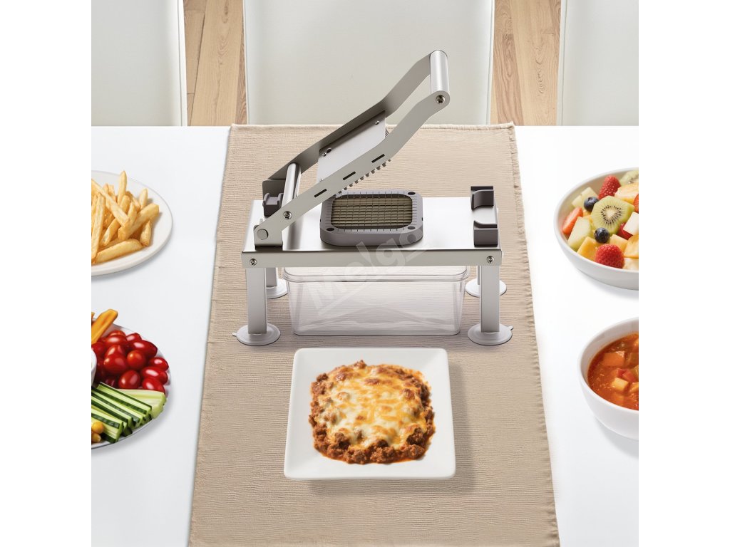Je vybaven několika velikostmi nožů, které jsou ideální pro okurky, mrkev, brambory a další ingredience, a splňuje tak potřeby různých pokrmů.