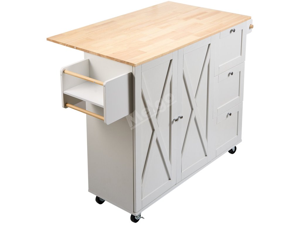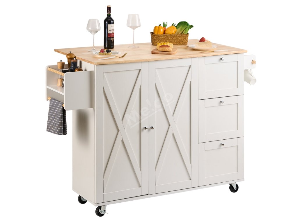 Multifunkční kuchyňský ostrovní vozík s deskou z masivního dřeva