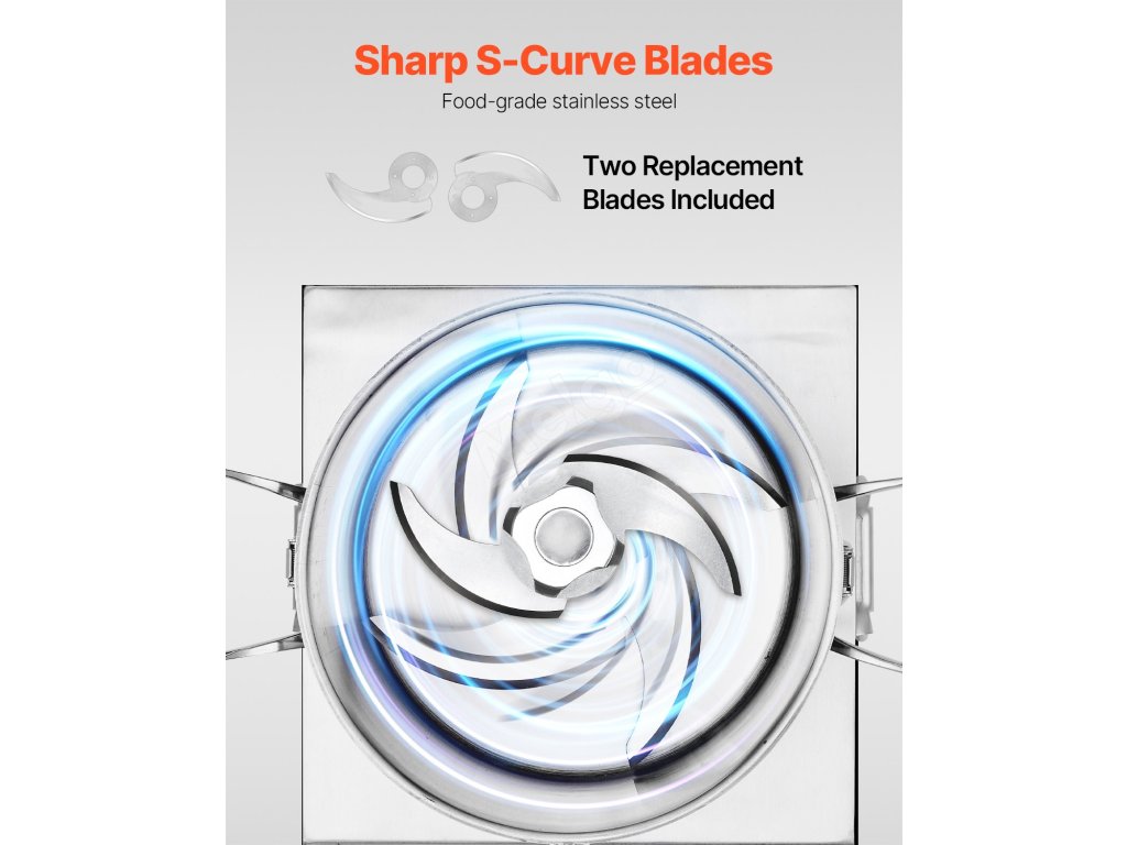 Díky našim odolným a ostrým zakřiveným nožům ve tvaru písmene S a průměrné rychlosti otáčení 1400 otáček za minutu můžete rychle sekat suroviny a ušetřit tak drahocenný čas na přípravu. Rozlučte se s únavnou přípravou potravin a přivítejte pohodlí.