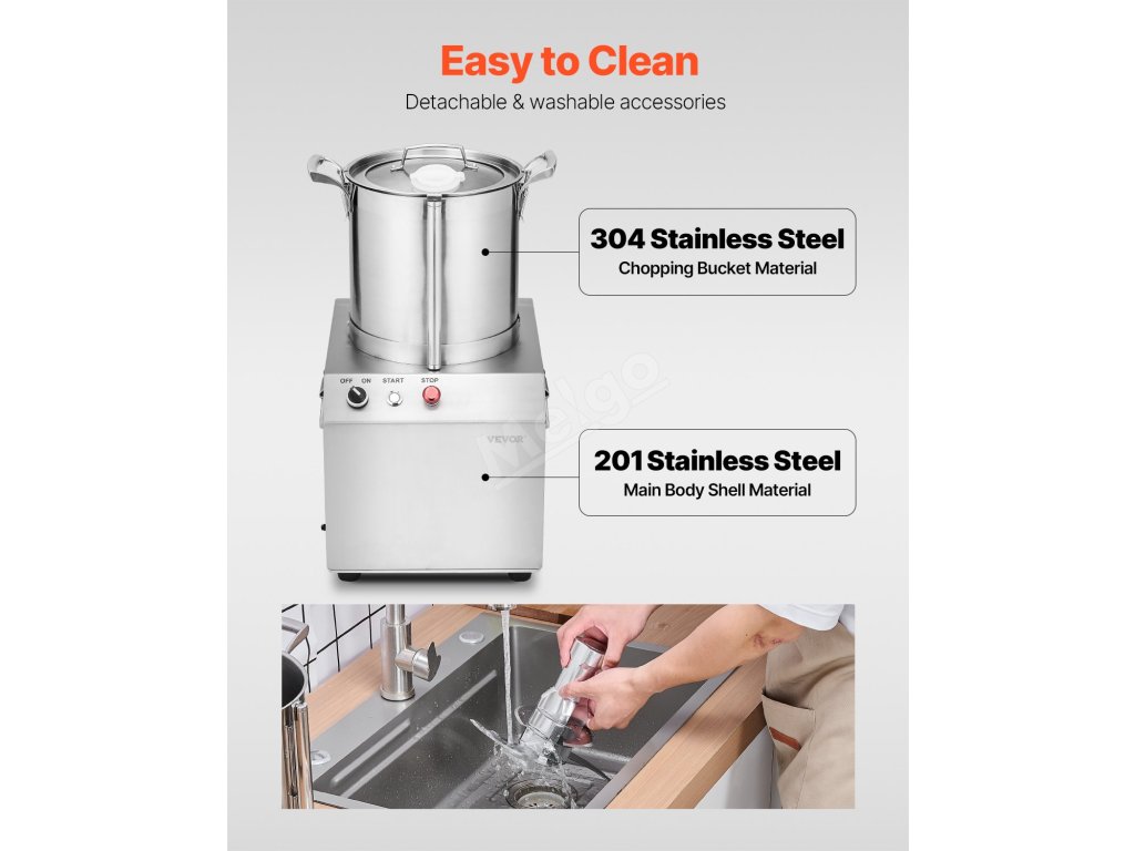 Náš kuchyňský robot má celonerezové tělo se snadno vyjímatelnými a omyvatelnými součástmi pro snadnou údržbu. Můžete se spolehnout na kvalitu použitých materiálů, aby vaše potraviny zůstaly bezpečné a chutné.