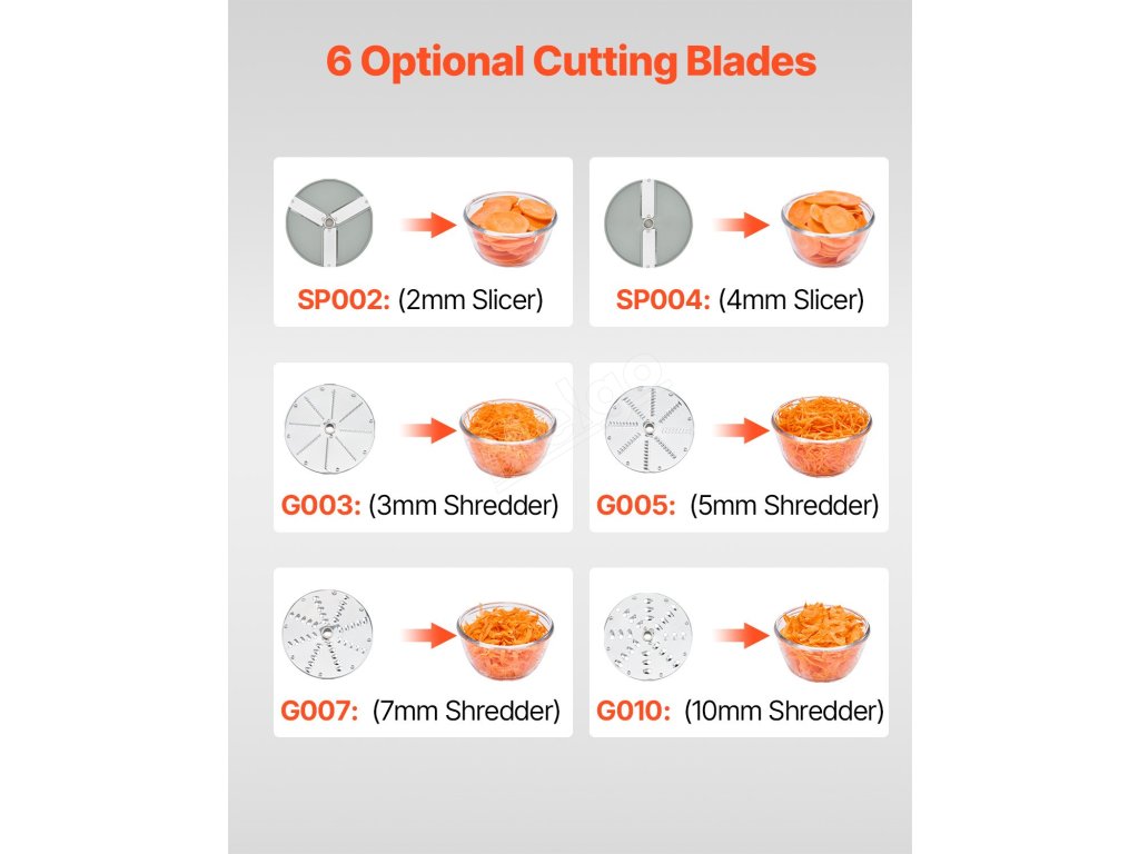 Kuchyňský robot kráječ 2 otvory nerez 6 nožů 3/5/7/10mm 2/4mm