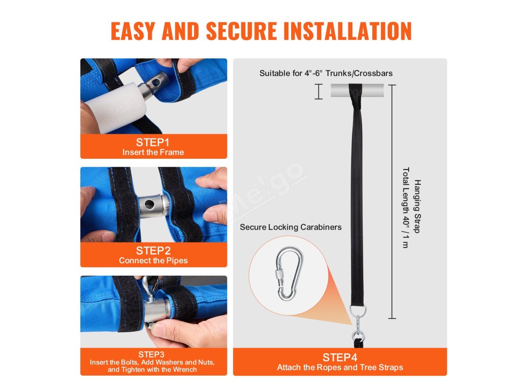 Základna houpačky je vyrobena především z nylonové tkaniny s vysokou hustotou 900D, která je pevnější a voděodolnější než běžná nylonová tkanina 600D. Je odolná proti plísním a zachovává si svou krásnou barvu bez vyblednutí.