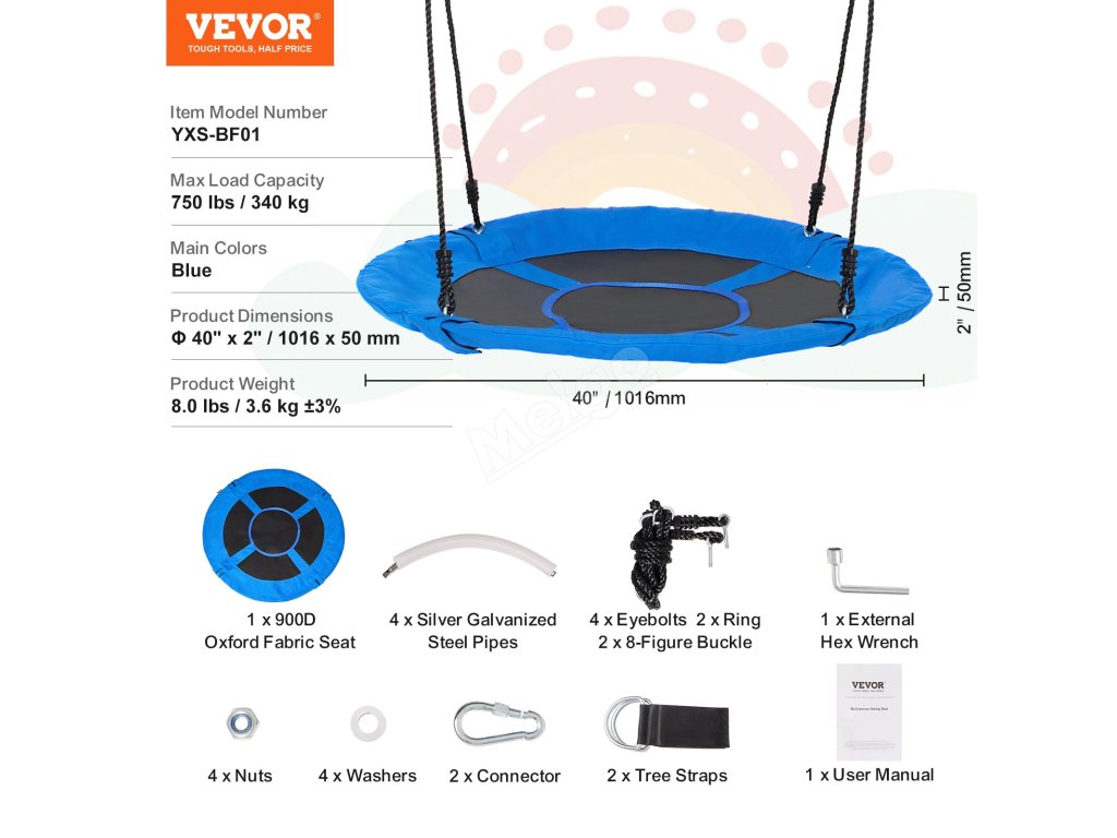 Kulatá houpačka 40 inch, nosnost 750 lbs, 900D oxford, se 2 popruhy