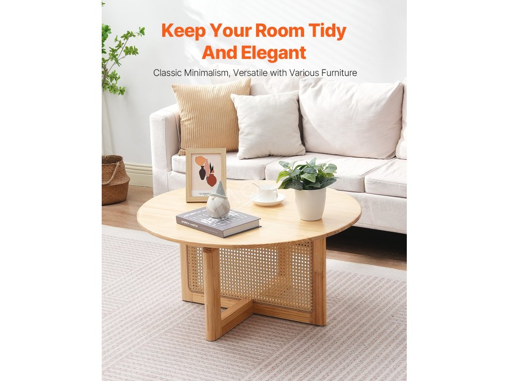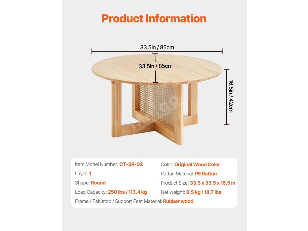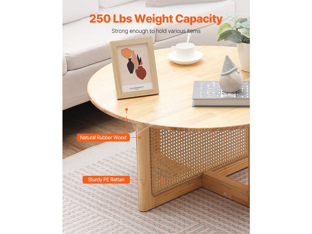 Tento kulatý ratanový konferenční stolek je vyroben z přírodního kaučukového dřeva a odolného ratanu PE. Má působivou nosnost 250 liber (113,4 kg), což zajišťuje jeho pevnost pro každodenní používání.