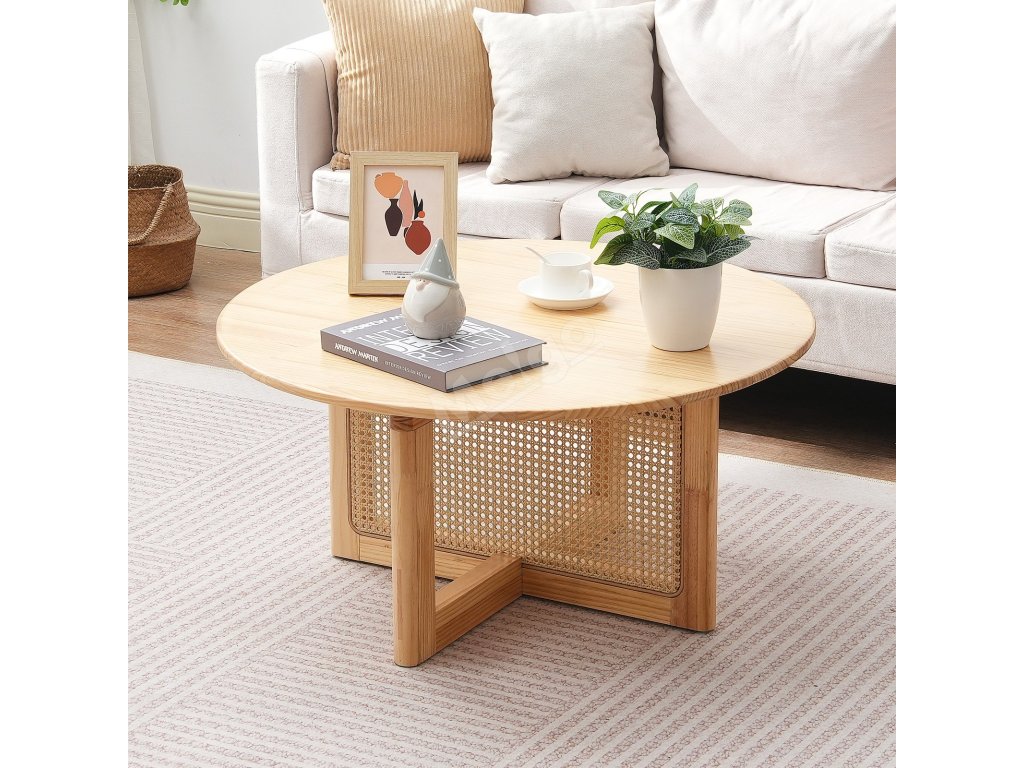 Tento ratanový konferenční stolek kombinuje bohémský styl s moderním designem. Má desku z kaučukového dřeva, unese až 250 kg a má jednoúrovňovou konstrukci pro ukládání. Snadno se sestavuje a čistí. Ideální do každého pokoje!
