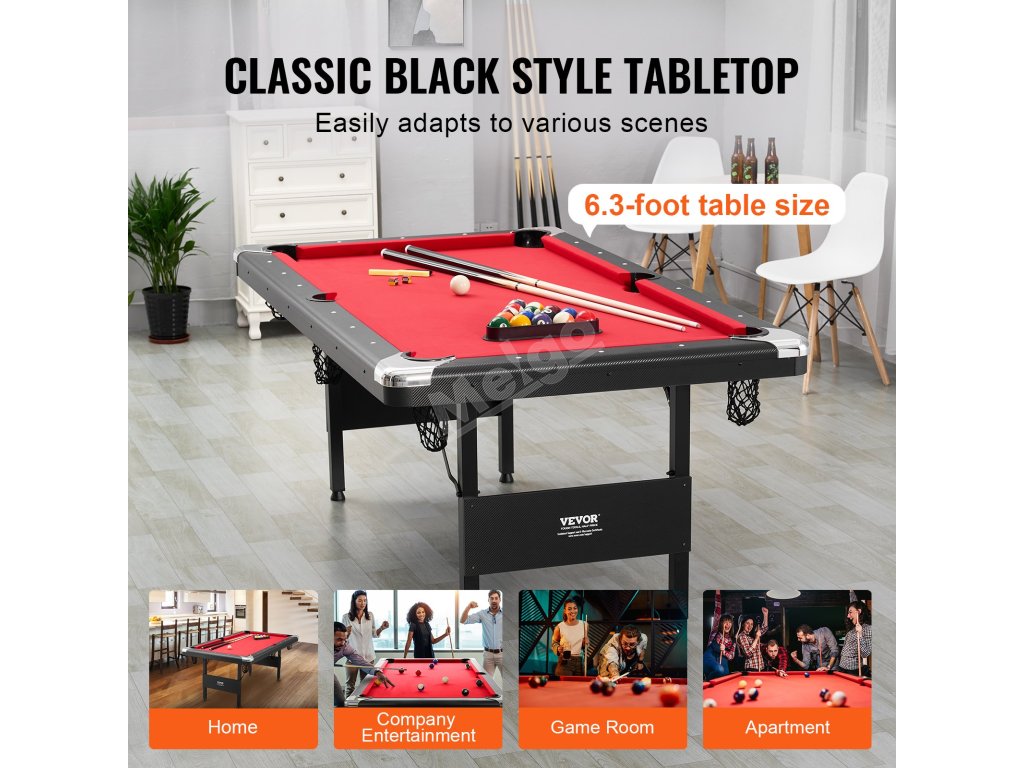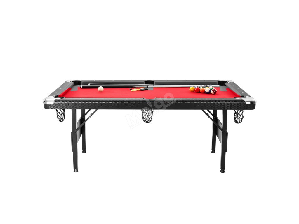 Kulečníkový stůl 192 cm, skládací přenosný, černý s červeným plátnem