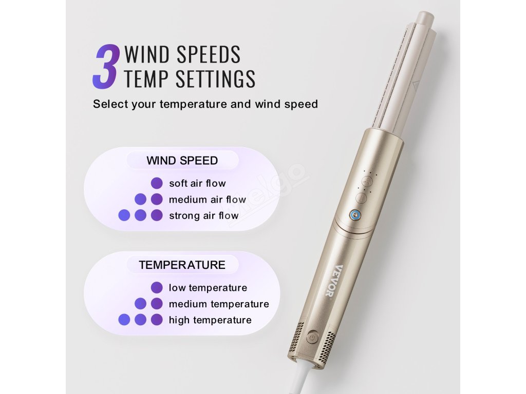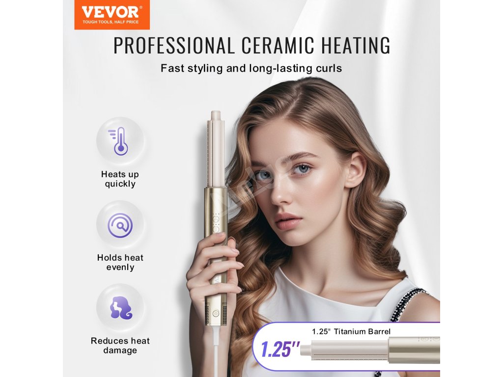 Součástí je 8 multifunkčních doplňků: levý/pravý automatický barel, objemový tepelný kartáč, vyhlazovací narovnávací kartáč, stylingová tryska, difuzní tryska, vyhlazovací tryska a kulma. Sada podporuje různé účesy, od kudrlinek po rovné vlasy, a zpříjemňuje tak úpravu vlasů.