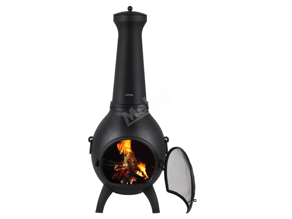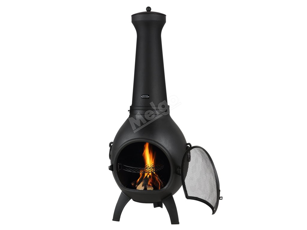 Náš velký komín umožňuje spalovat různá paliva, například dřevo a dřevěné uhlí, a pojme 12-14" polena. Přiložený pohrabáč na oheň umožňuje snadnou regulaci paliva a zajišťuje účinnější hoření.