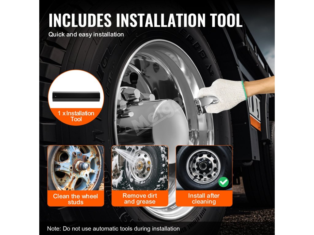 Tento kryt kol z nerezové oceli je navržen pro jednoduchou a rychlou instalaci, takže jej lze snadno namontovat a vyměnit, kdykoli je to potřeba.