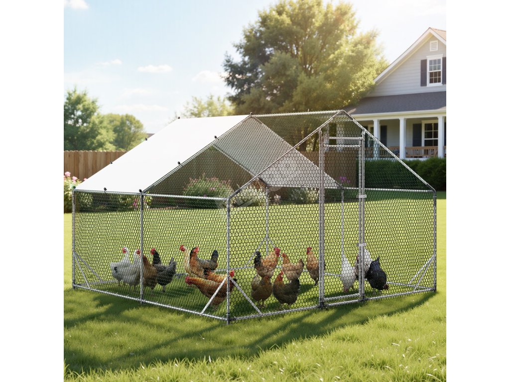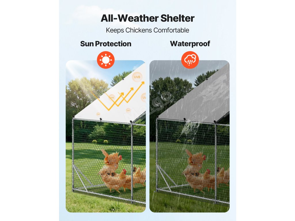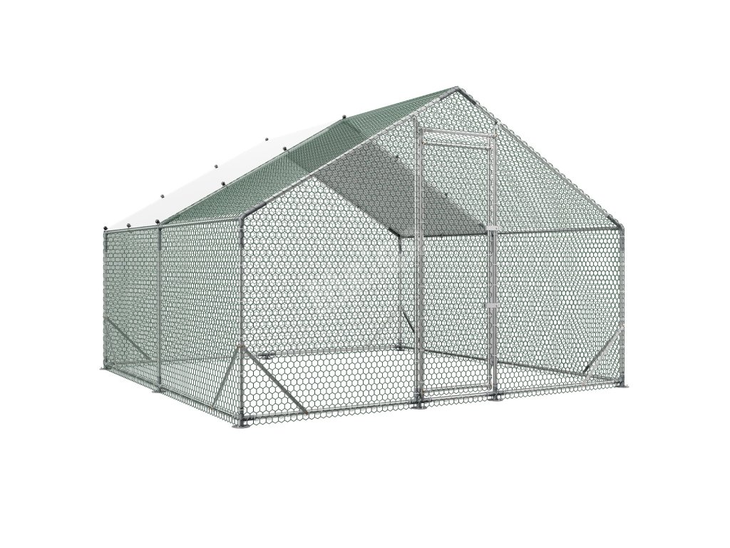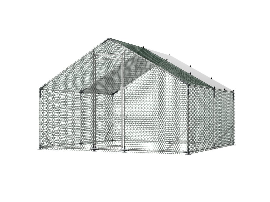 Kurník s výběhem 3×3×2 m, kovový rám, nepromokavá plachta, dveře