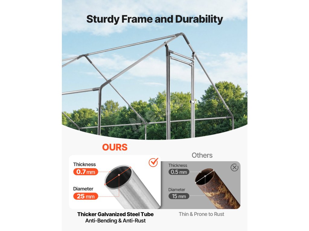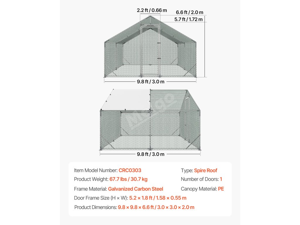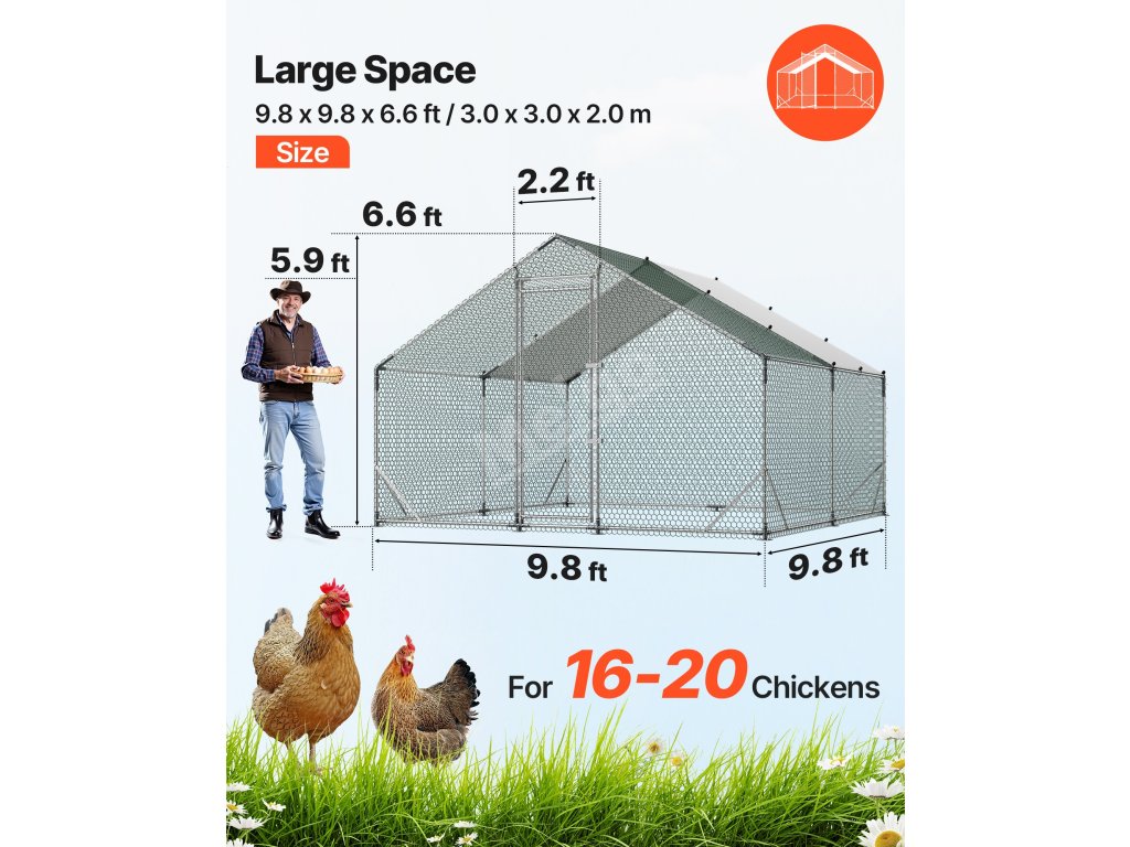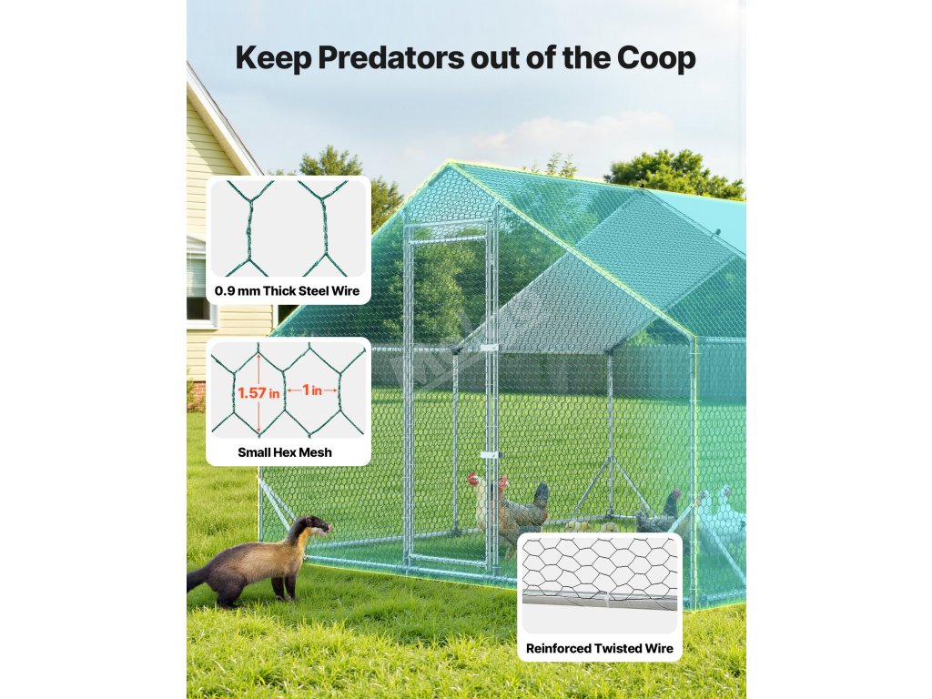 Kurník s výběhem 3×3×2 m, kovový rám, nepromokavá plachta, dveře