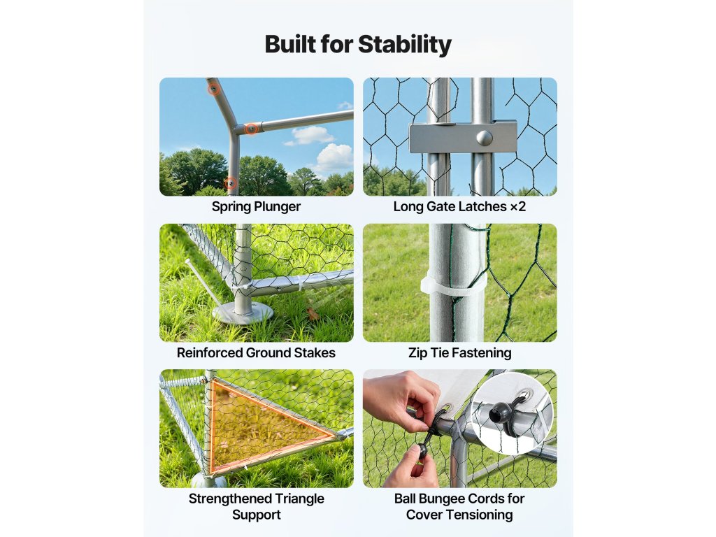 Tento kurník kombinuje odolnost a pohodlí a poskytuje bezpečný úkryt před nepřízní počasí a predátory. Prostorná průchozí konstrukce promění každodenní péči v potěšení a nabízí zdravé prostředí bez stresu pro slepice, kachny a králíky.