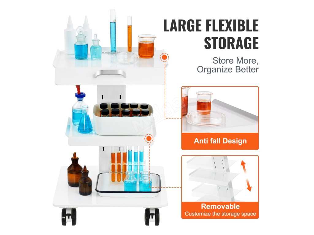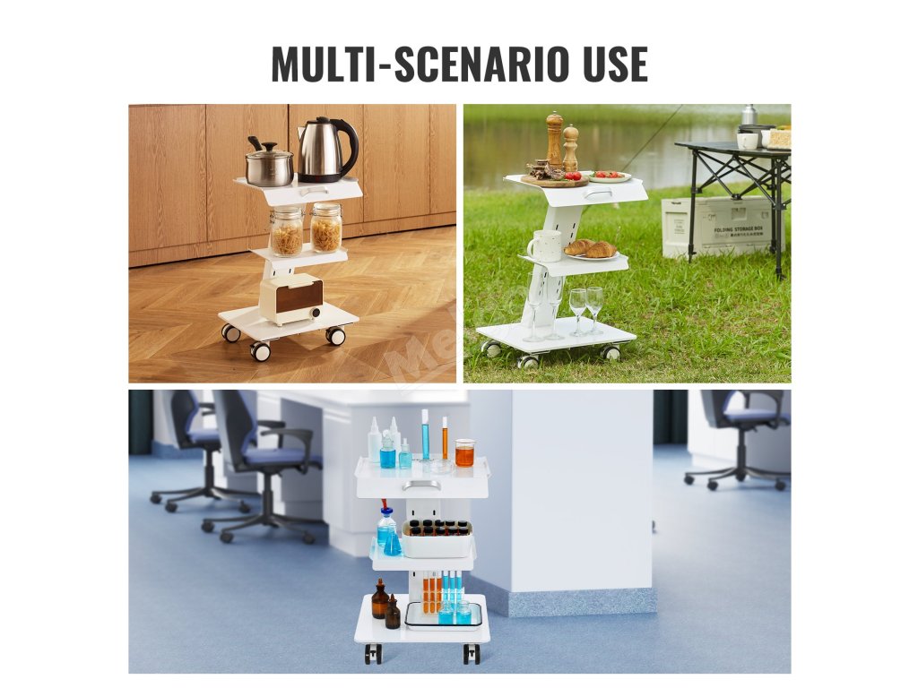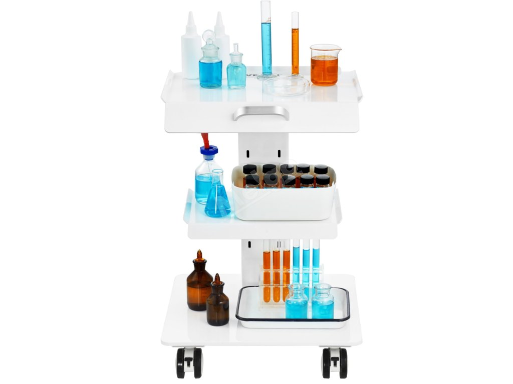 Užitkové vozíky s kolečky jsou víceúčelové vozíky, vhodné nejen pro použití v laboratořích, stomatologii, ale také ideální pro kosmetický salon, výzkumné centrum, nemocnice atd.