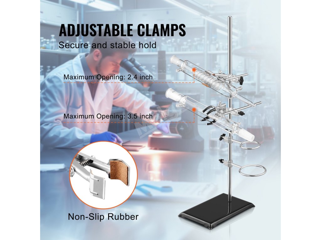 Svorky jsou navrženy tak, aby pevně držely zkumavky nebo baňky a zabraňovaly jakémukoli otřesu nebo uvolnění experimentální aparatury.