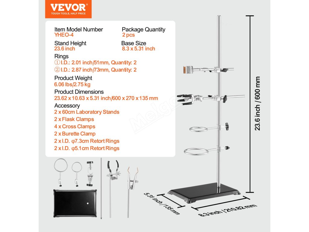 Laboratorní retortový stojan 2 ks, tyč 59.9 cm, základna 21.1×13.5 cm