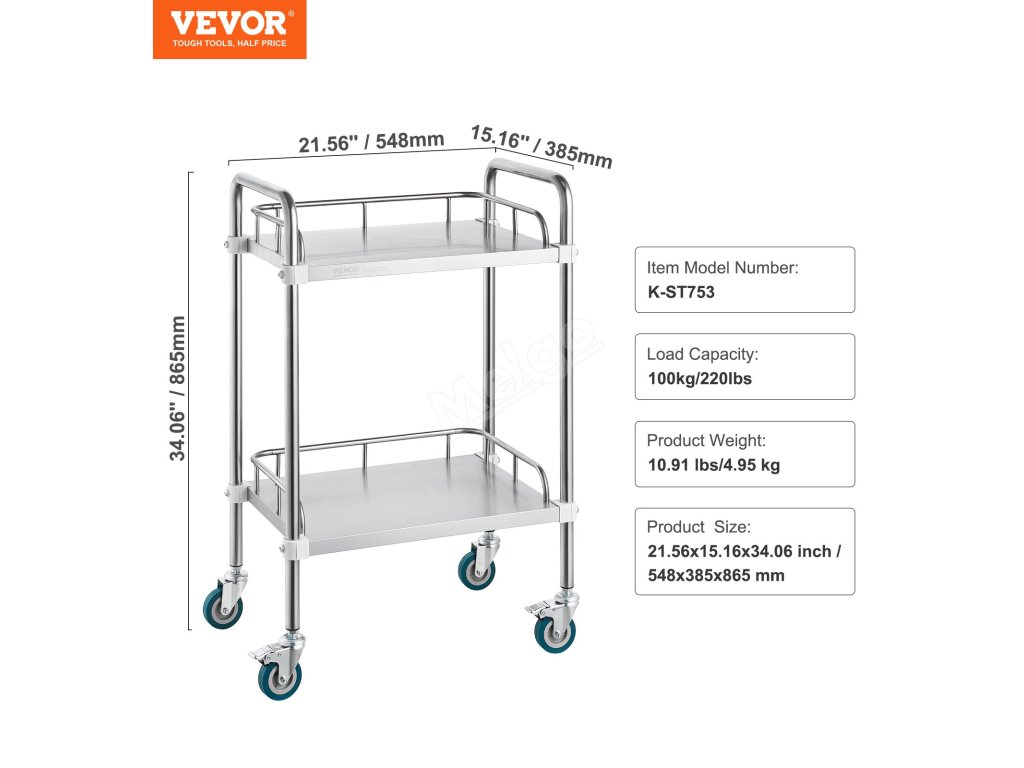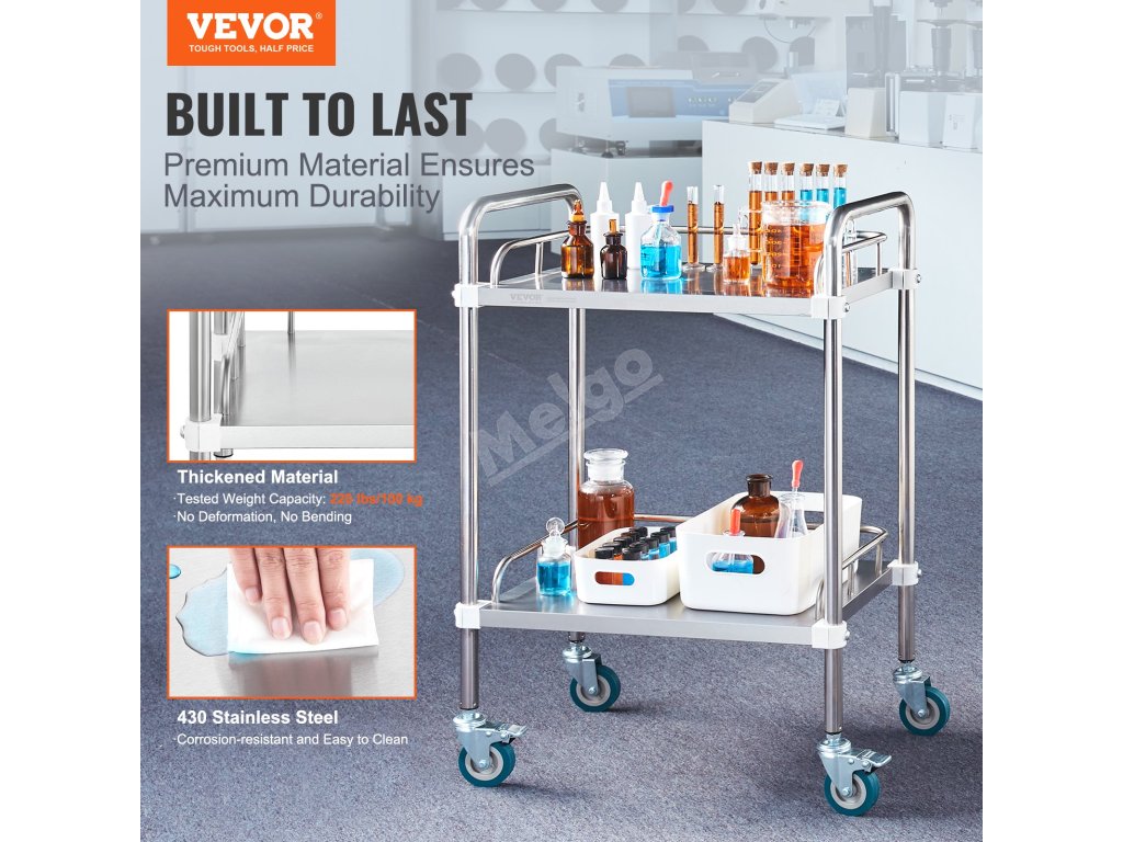 Tento laboratorní vozík je vyroben z masivní oceli, díky čemuž je stabilní, pevný a nosný; unese 220 kg, což je dostatečná nosnost, aby mohl sloužit jako užitkový vozík.