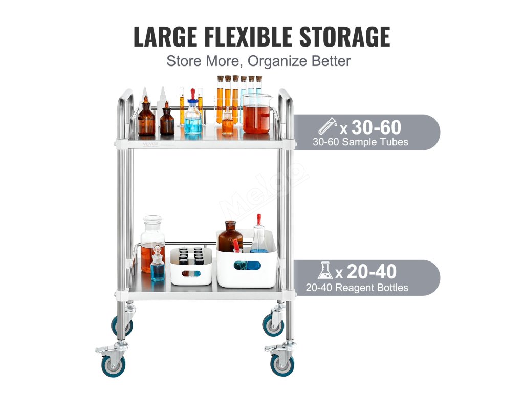 Tento laboratorní servírovací vozík umožňuje snadnou údržbu laboratorních předmětů; je vhodný pro laboratoře, školy, univerzity, salony atd. Ideální pro ukládání, uspořádání a přepravu předmětů.