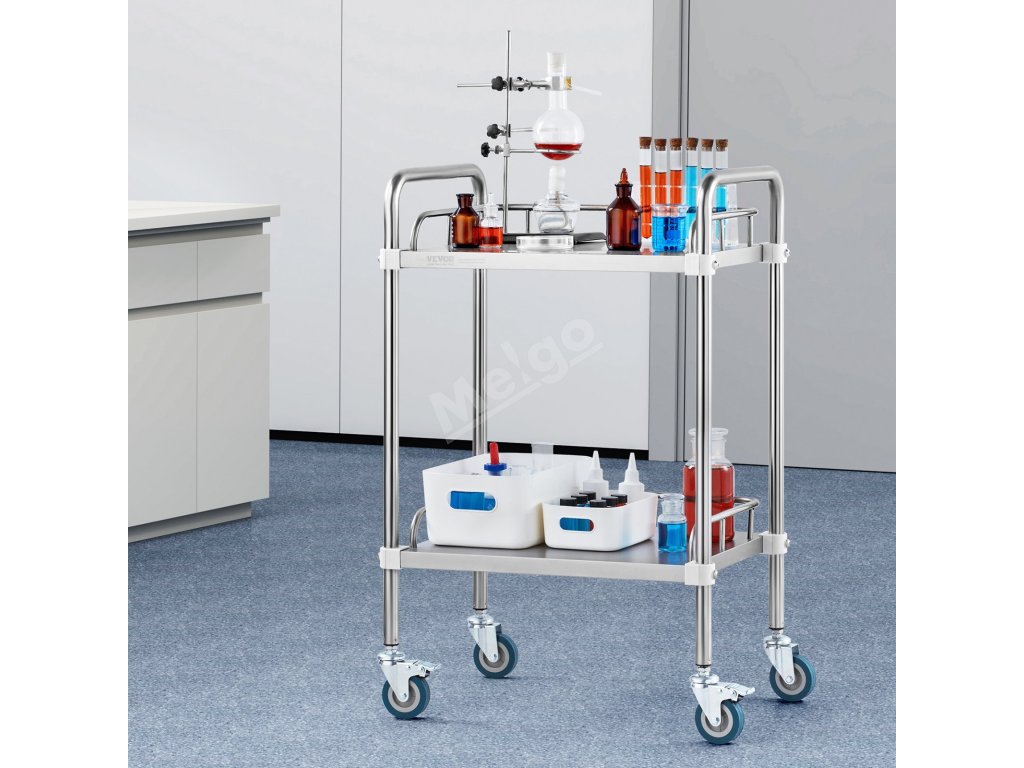 Laboratorní vozík 2 police nerez, otočná kolečka, 385×548×865 mm