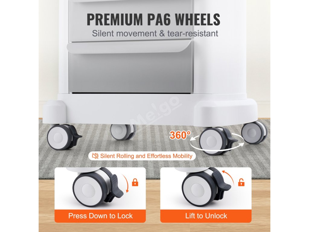 Náš pojízdný vozík na zásobníky je vybaven tichými kolečky odolnými proti opotřebení, ergonomickými rukojeťmi a otočným úhlem 361° pro vynikající manévrovatelnost a stabilitu.