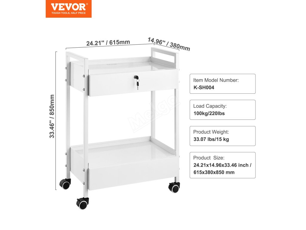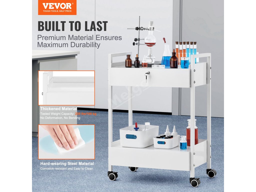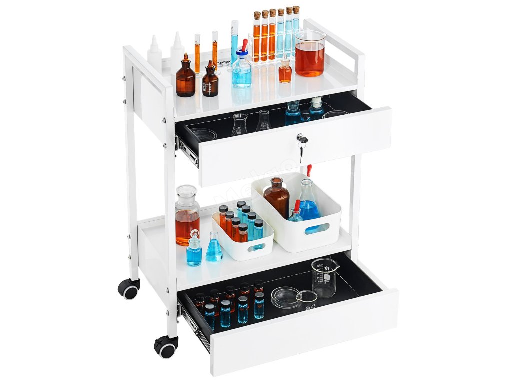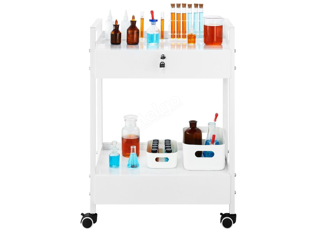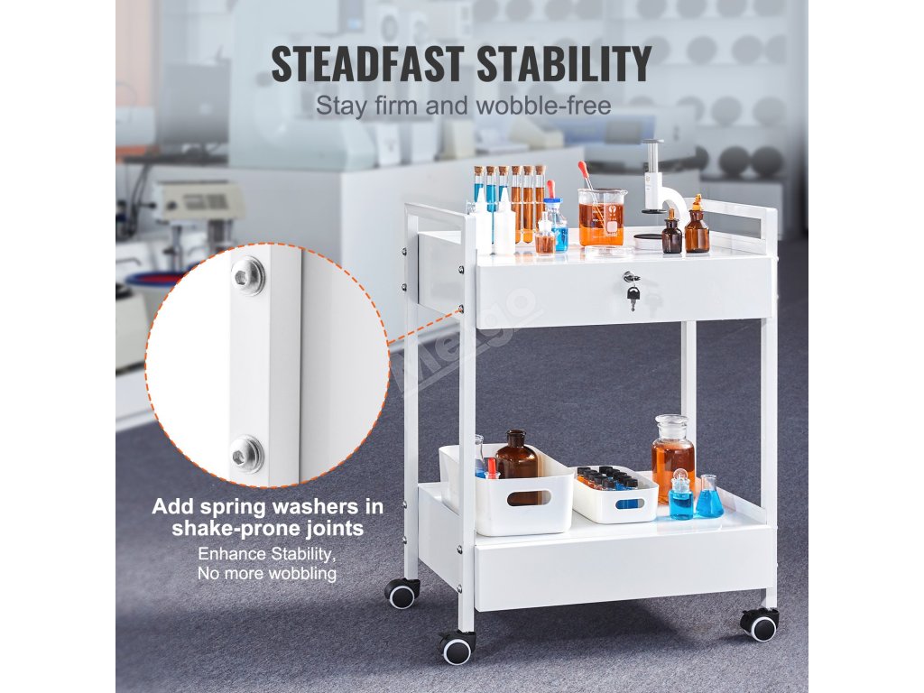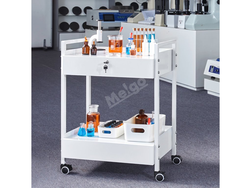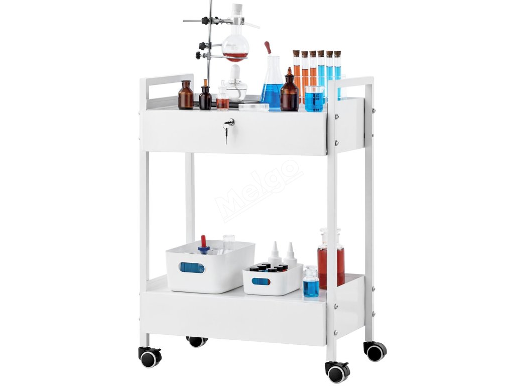 Laboratorní vozík má uzamykatelné zásuvky a tichá 360stupňová kolečka, na kterých můžete uspořádat své věci. Plochá ochranná deska a bíle lakovaný ocelový materiál jsou módní, snadno se tlačí a jsou odolné při používání. Horní pracovní police vám navíc poskytne další prostor, který můžete využít.