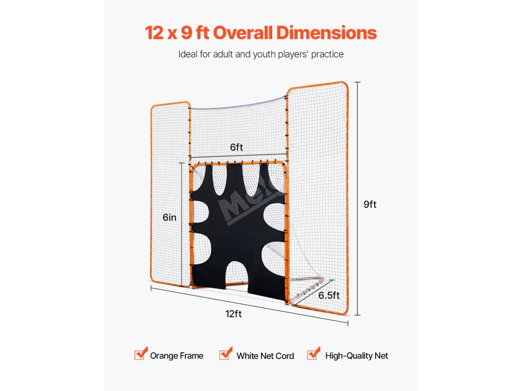 Lakrosový cíl 3v1 12×9 ft se zadní sítí a terčem ocelový rám