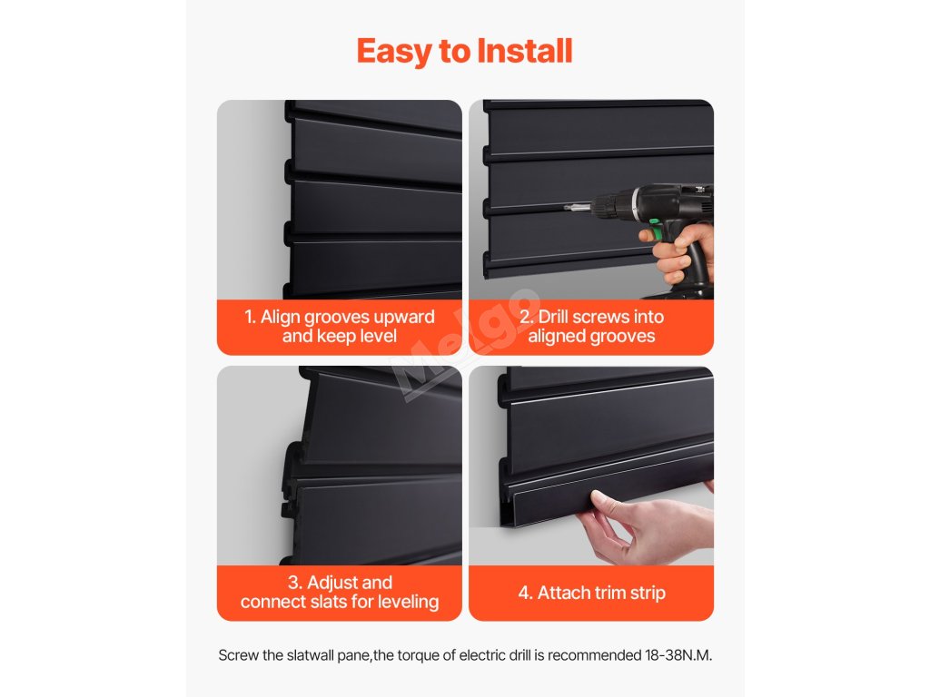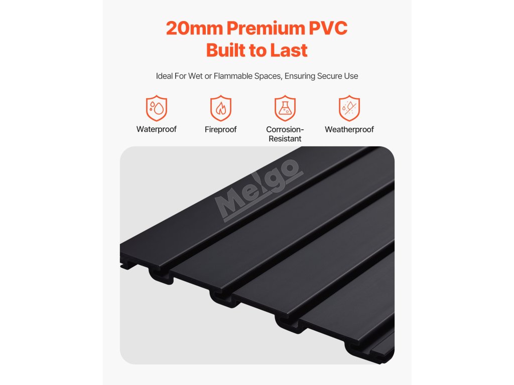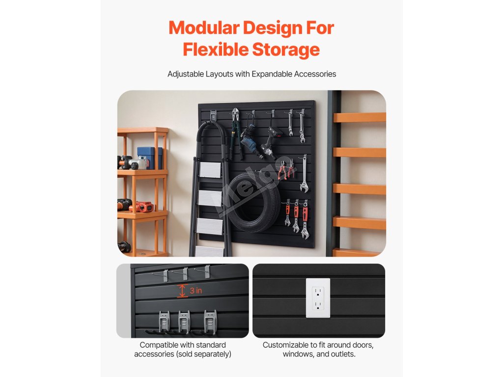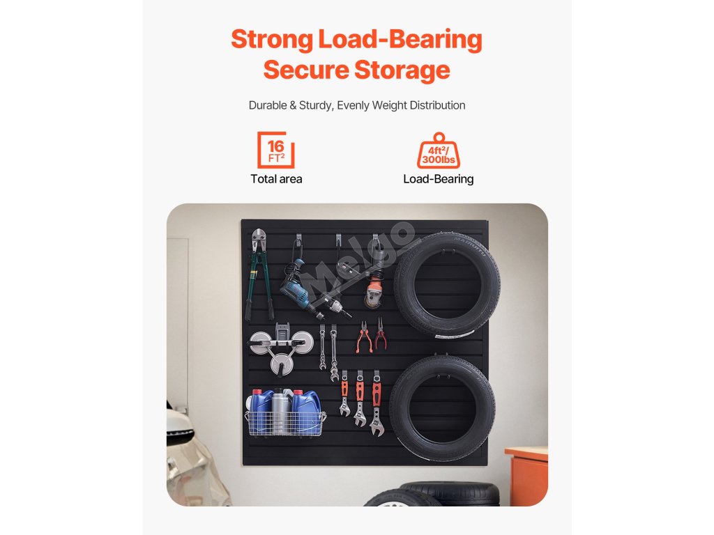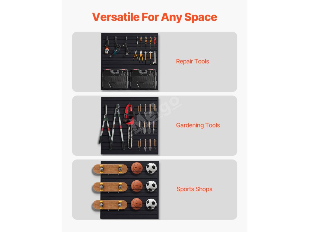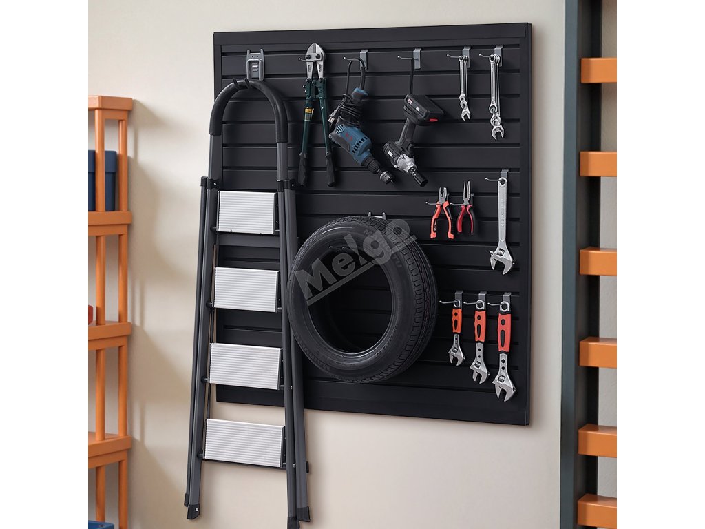 Tento lamelový stěnový panel se plně hodí do mnoha prostředí, včetně garáží, skladů, zahrad a obchodů, kde šetří místo, umožňuje efektivní skladování a stylové vystavení. Poskytne vám uklizený prostor!