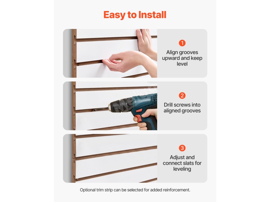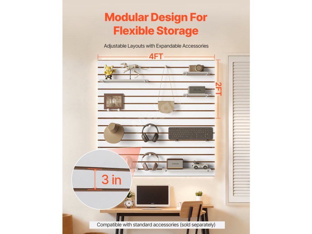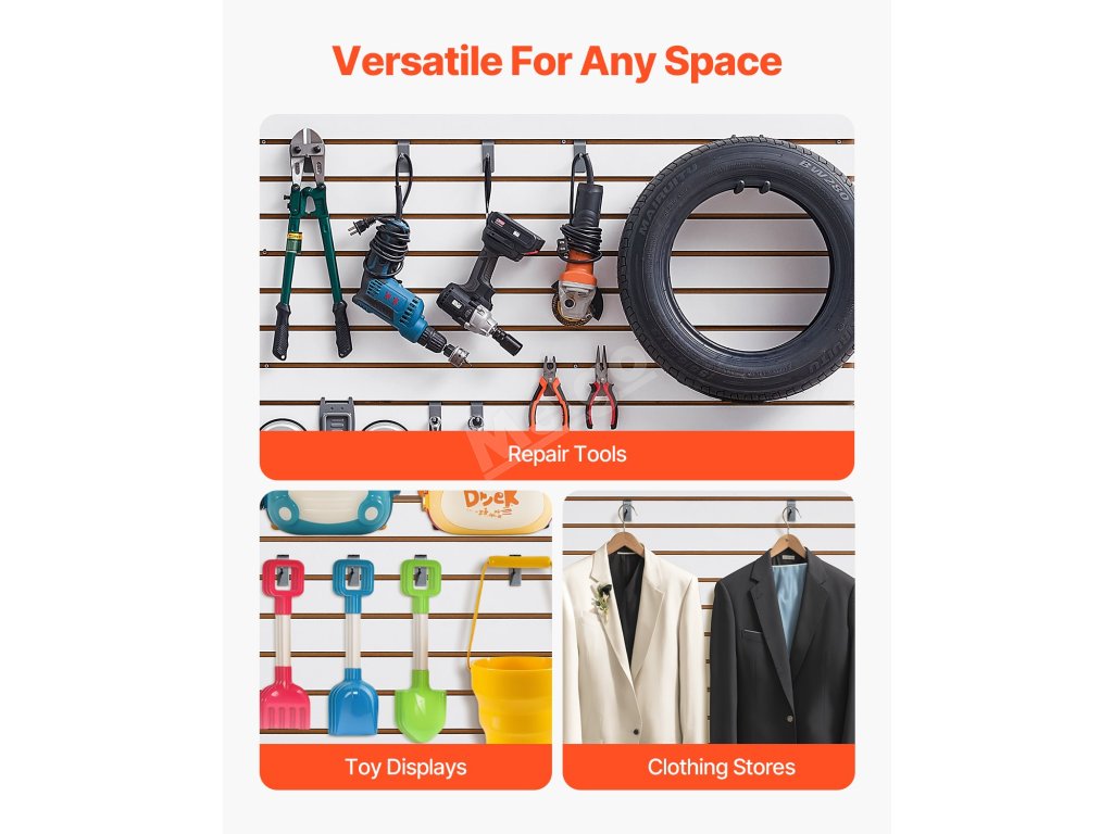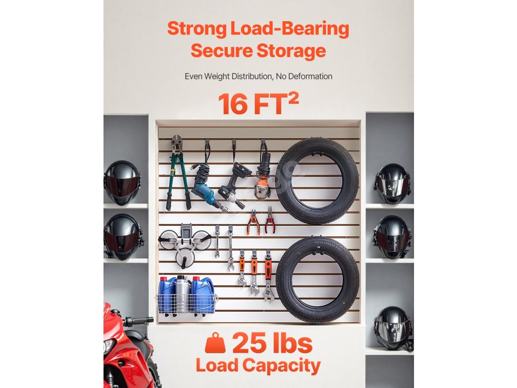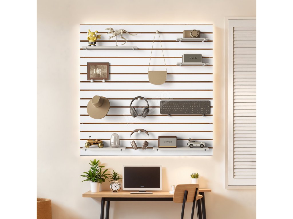 Tento lamelový stěnový panel se plně hodí do mnoha prostředí včetně domácností a obchodů, kde šetří místo, umožňuje efektivní skladování a stylové vystavení. Poskytne vám uklizený prostor!