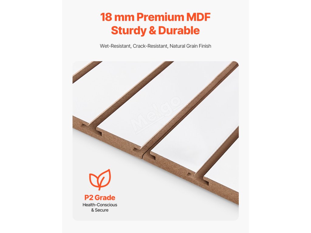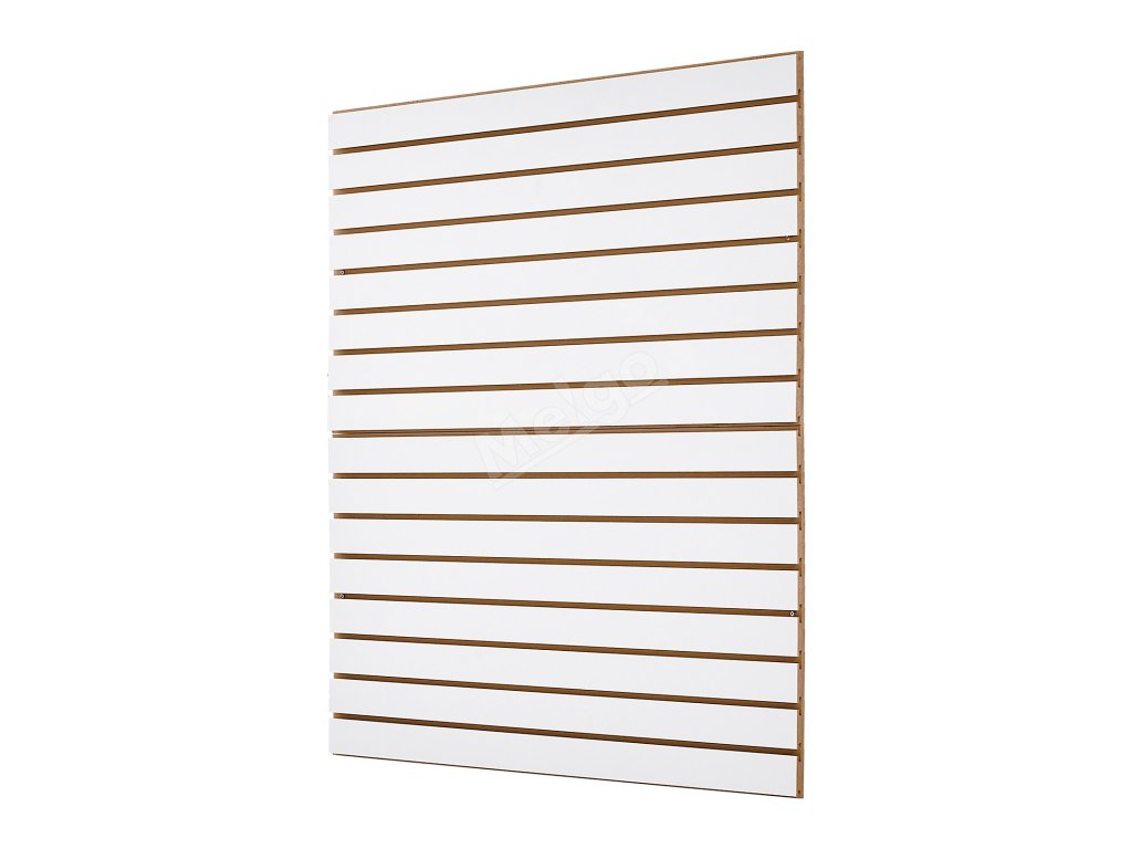 Lamelový panel slatwall 4×4 ft, mdf, bílý, modulární, nastavitelný