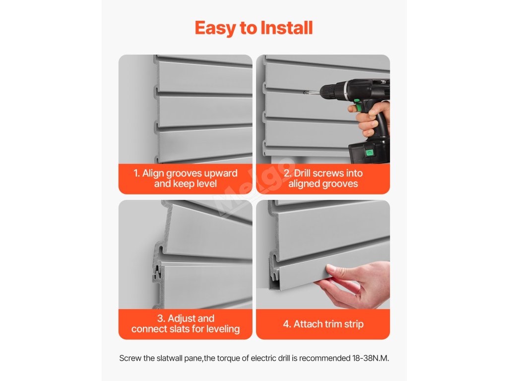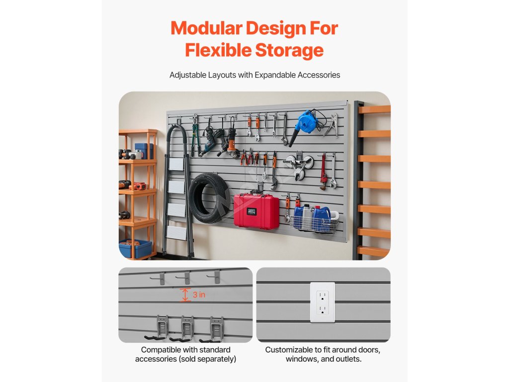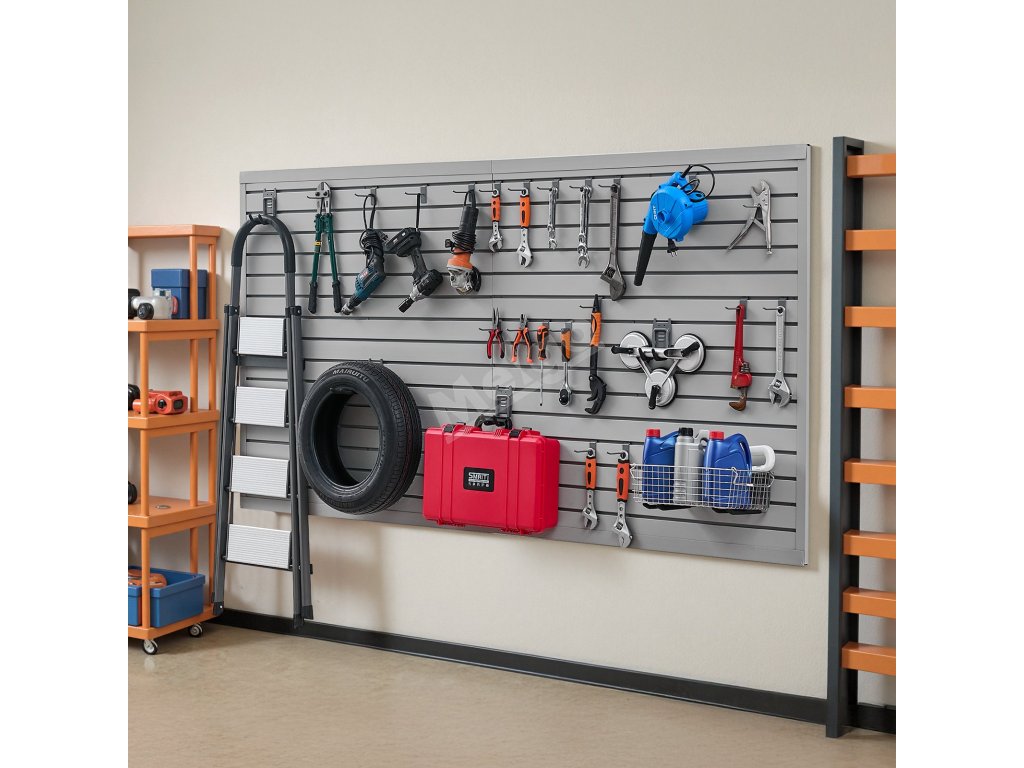 Tento lamelový stěnový panel se plně hodí do mnoha prostředí, včetně garáží, skladů, zahrad a obchodů, kde šetří místo, umožňuje efektivní skladování a stylové vystavení. Poskytne vám uklizený prostor!
