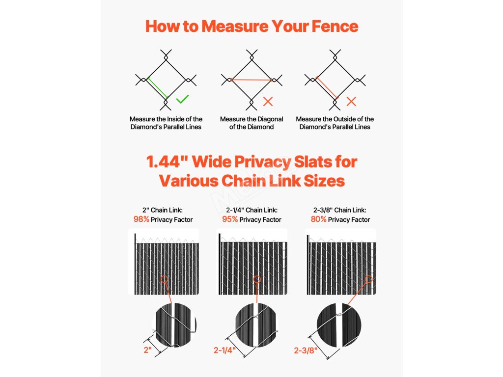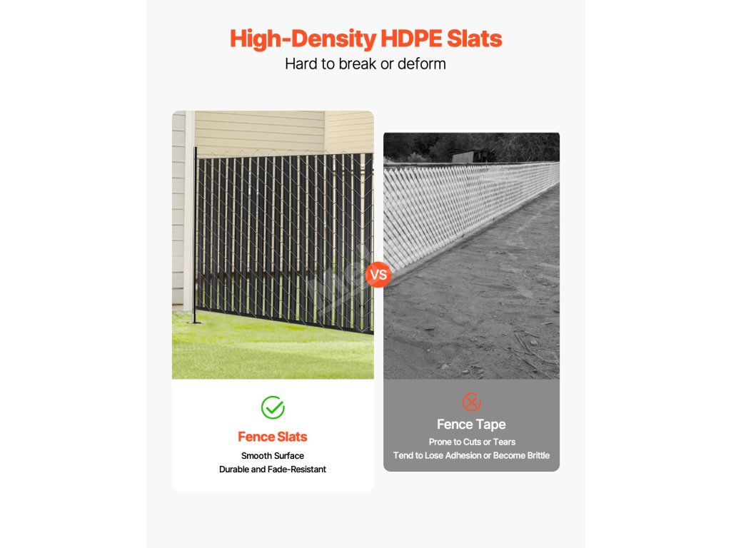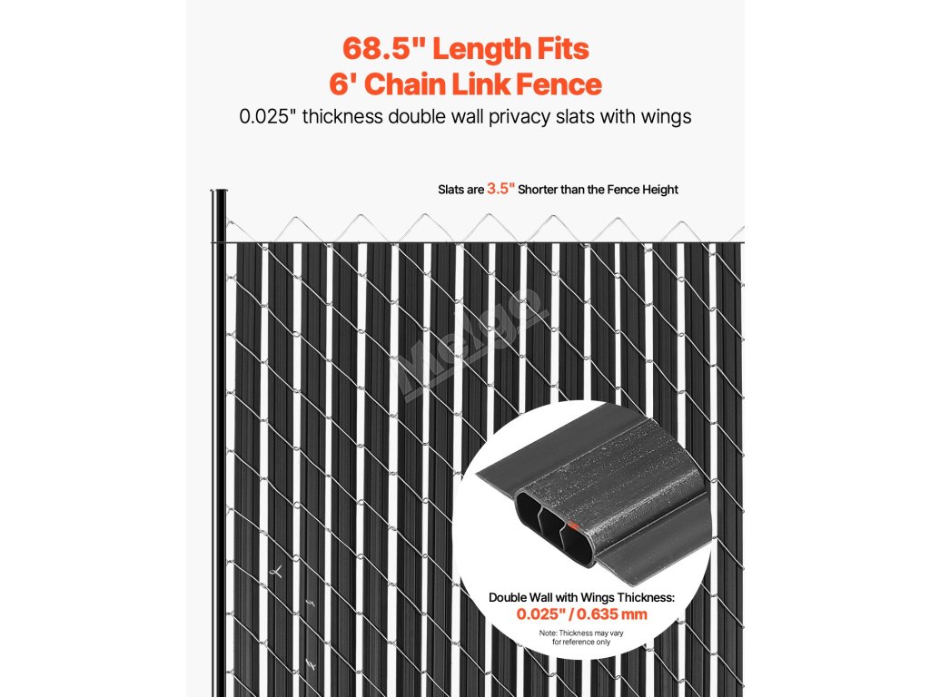Tyto 68,5" lamely jsou určeny pro 6' vysoké ploty. Tyto lamely jsou vyrobeny z HDPE s vysokou hustotou, jsou odolné proti povětrnostním vlivům, trvanlivé a snadno se instalují. Každé balení obsahuje 82 lamel a 3 spodní zajišťovací kanály pro ploty o délce 10 stop, které zajišťují bezpečné a stabilní uchycení.